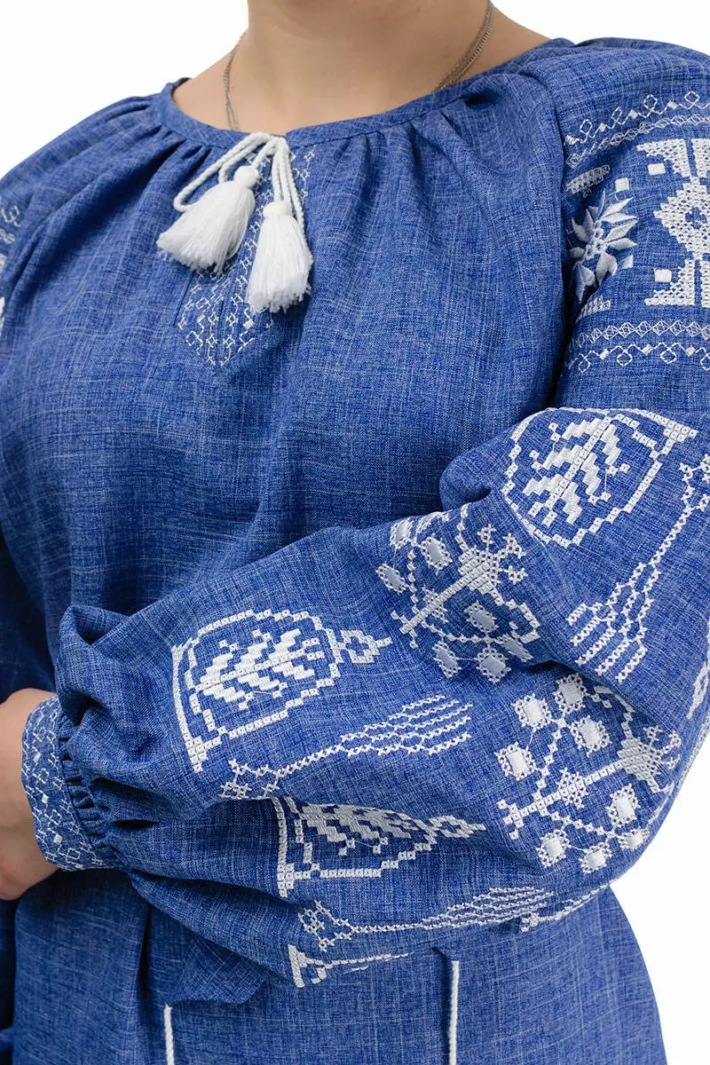 Сукня-вишиванка вироблена з якісних матеріалів. Тканина - льон-габардин щільна та приємна на дотик. Ошатні візерунки на рукавах і грудях вишиті машинним способом. Важливо, що навіть після багаторазового прання тканина і вишивка зберігають свої початкові кольори.