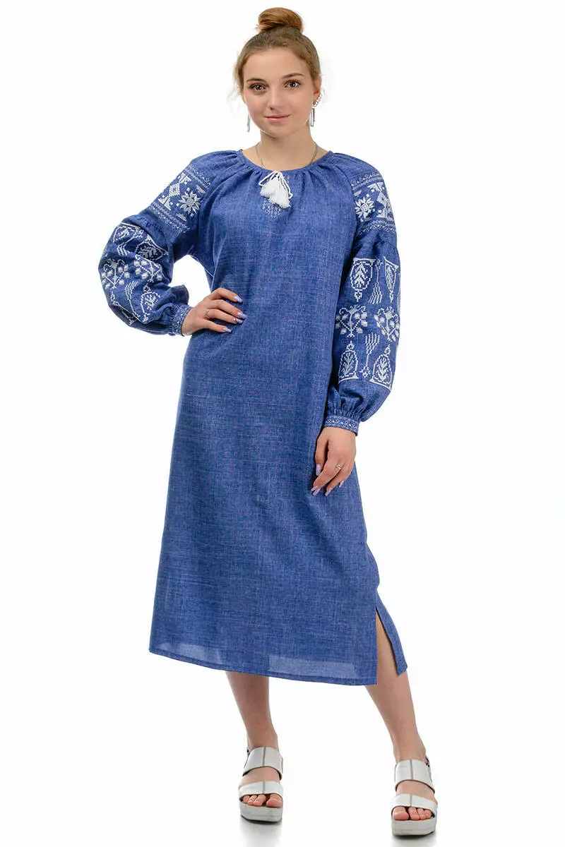 Стильна сукня-вишиванка "Купава" (джинсовий)