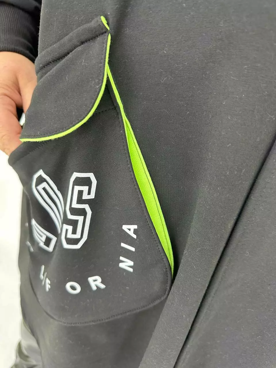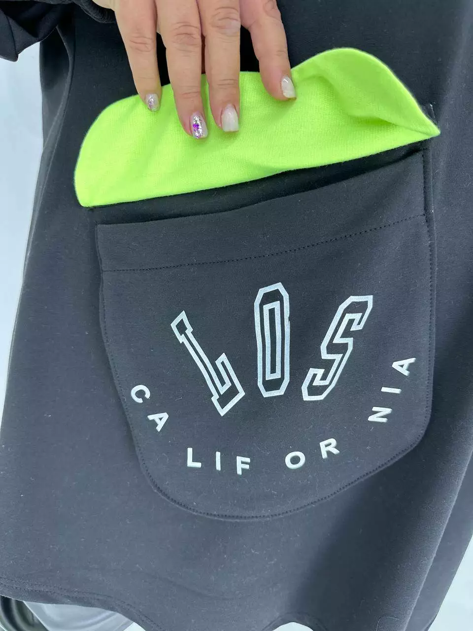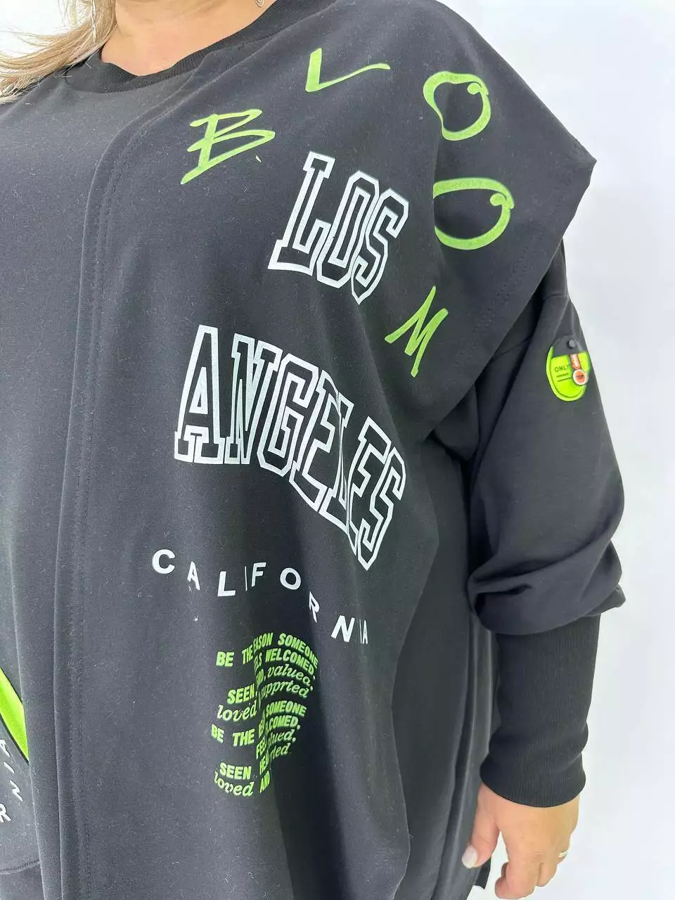Вільний силует зі спущеним плечем, високий манжет з рибани.