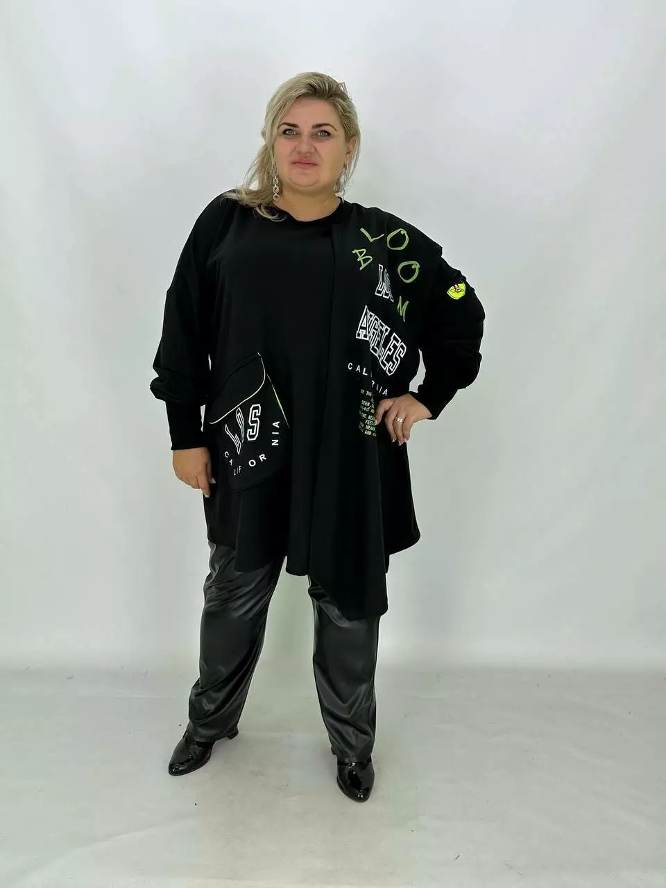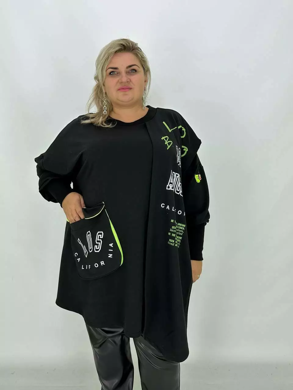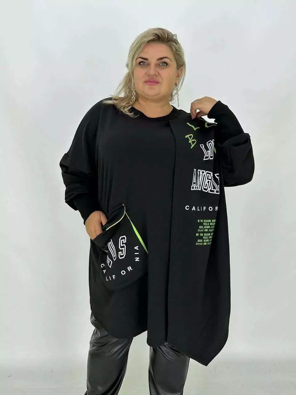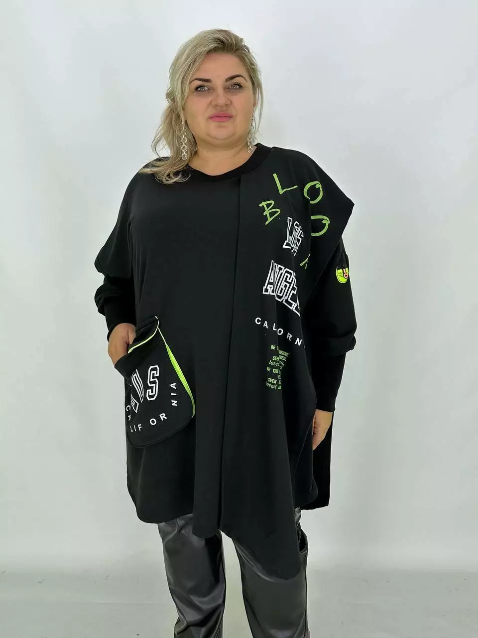 Стильна туніка з пришивним шарфом із трикотажу двонитка виробництво