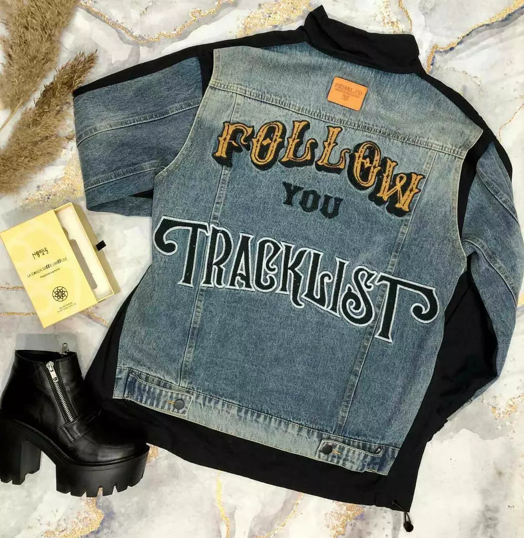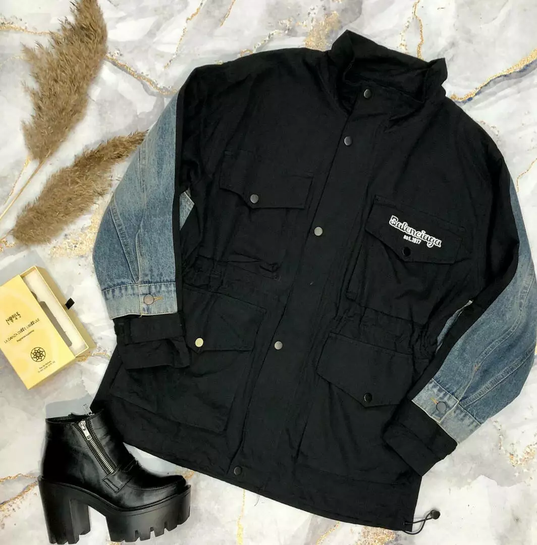 Стильна жіноча джинсовка з нашивками чорна 1082