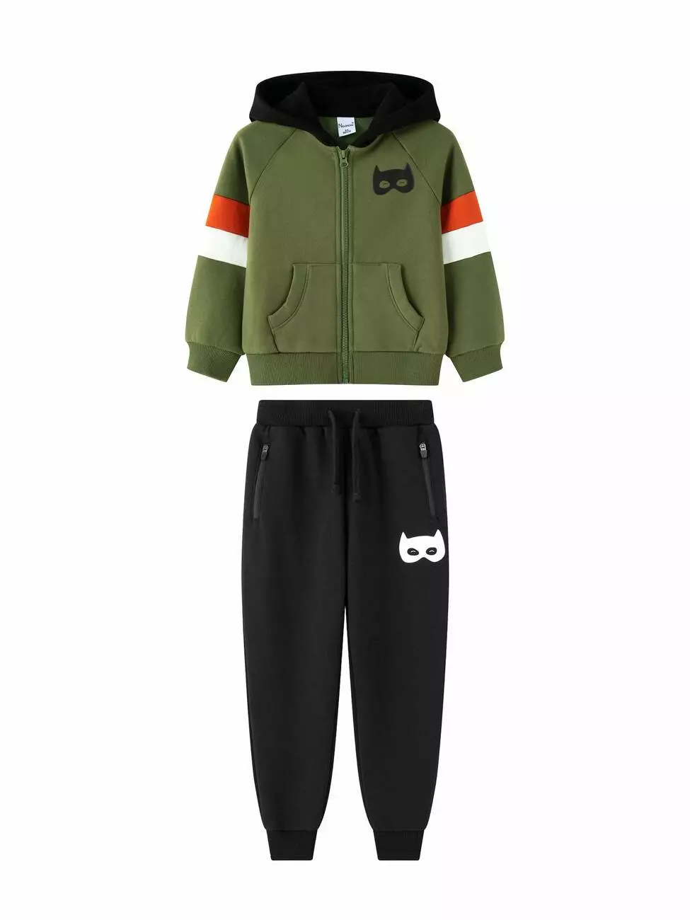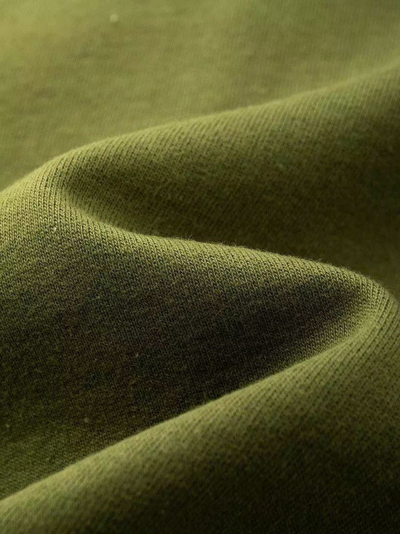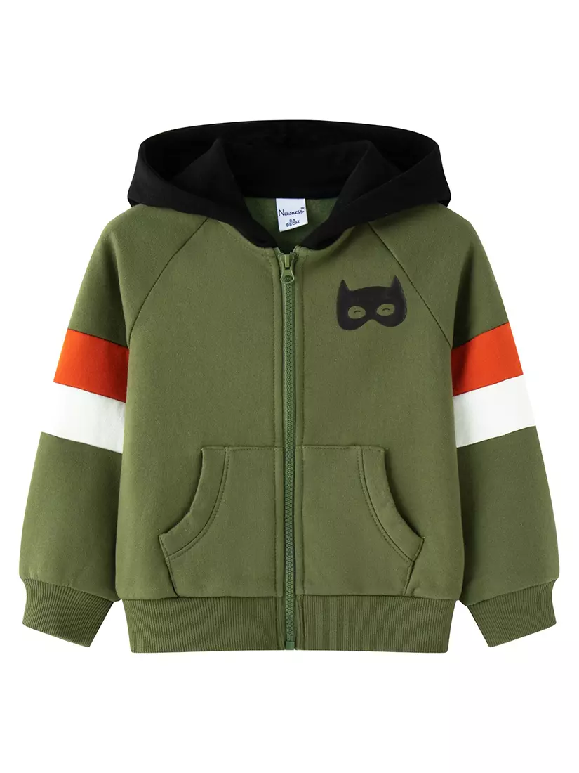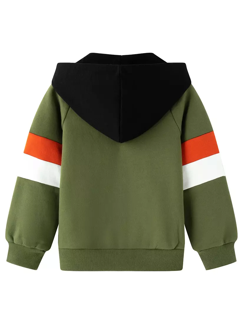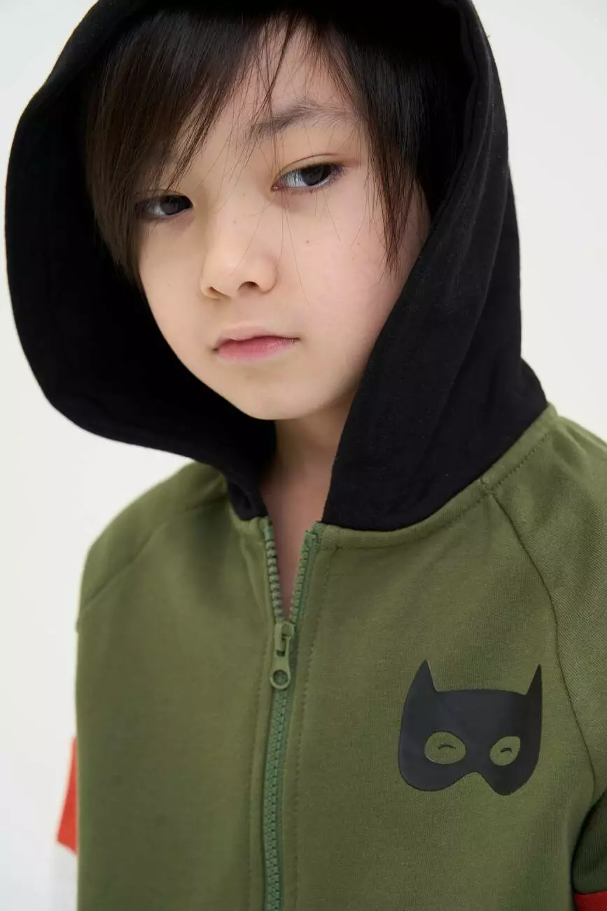 Толстовка зеленого кольору. Глибокий чорний капюшон.