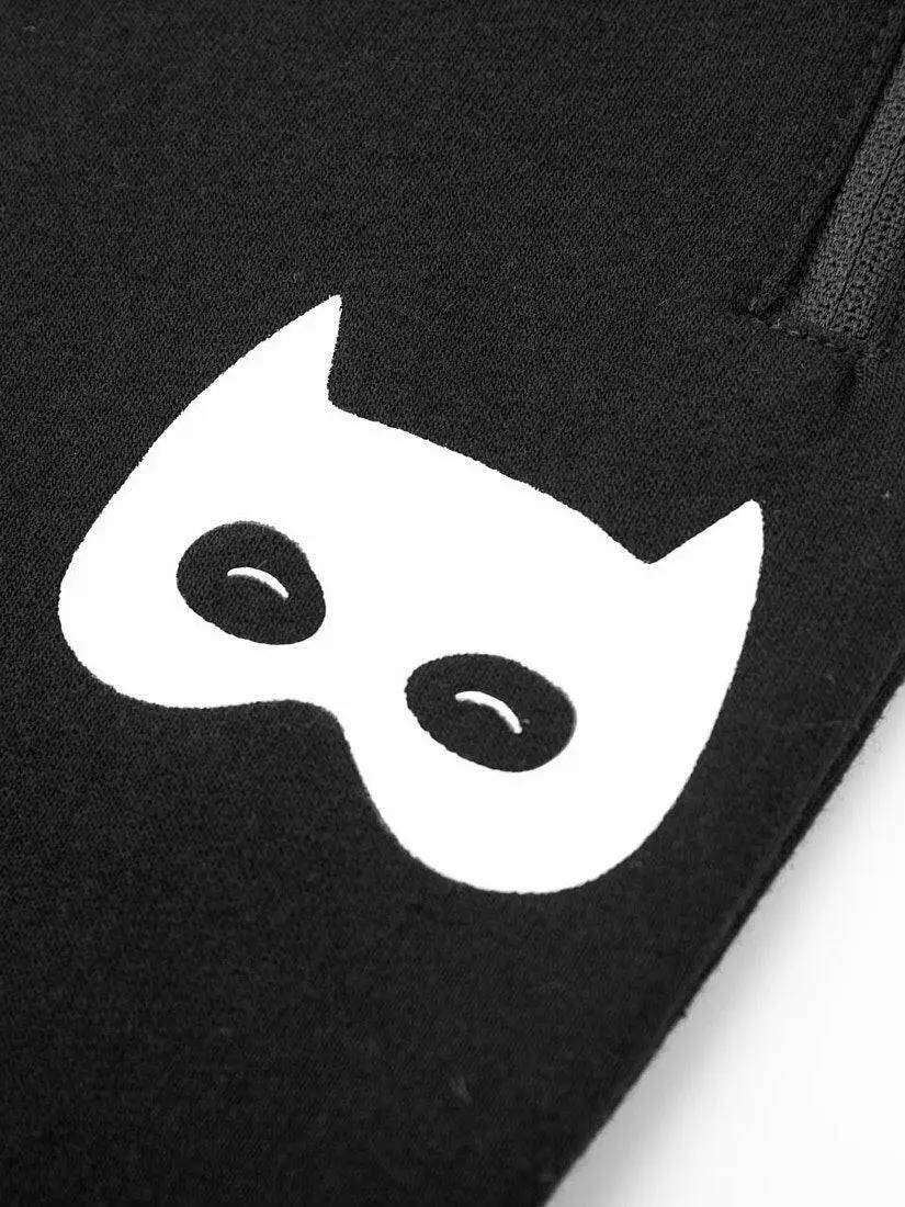 Спереду є білий принт з зображенням маски. Пояс на резинці. Є