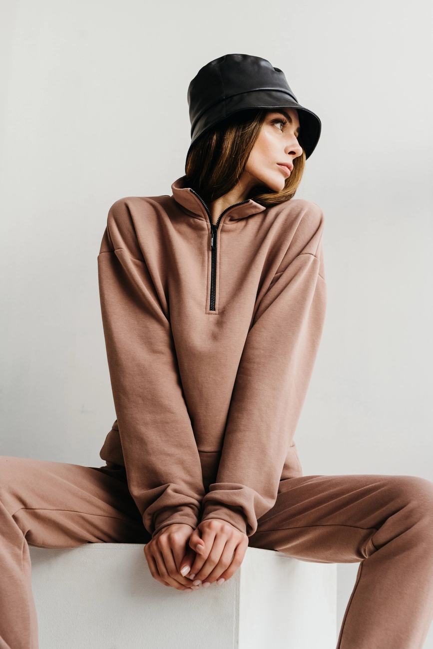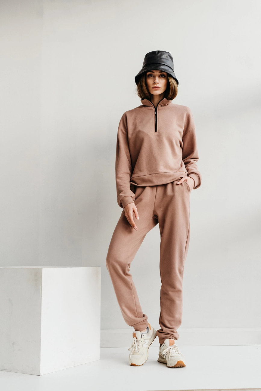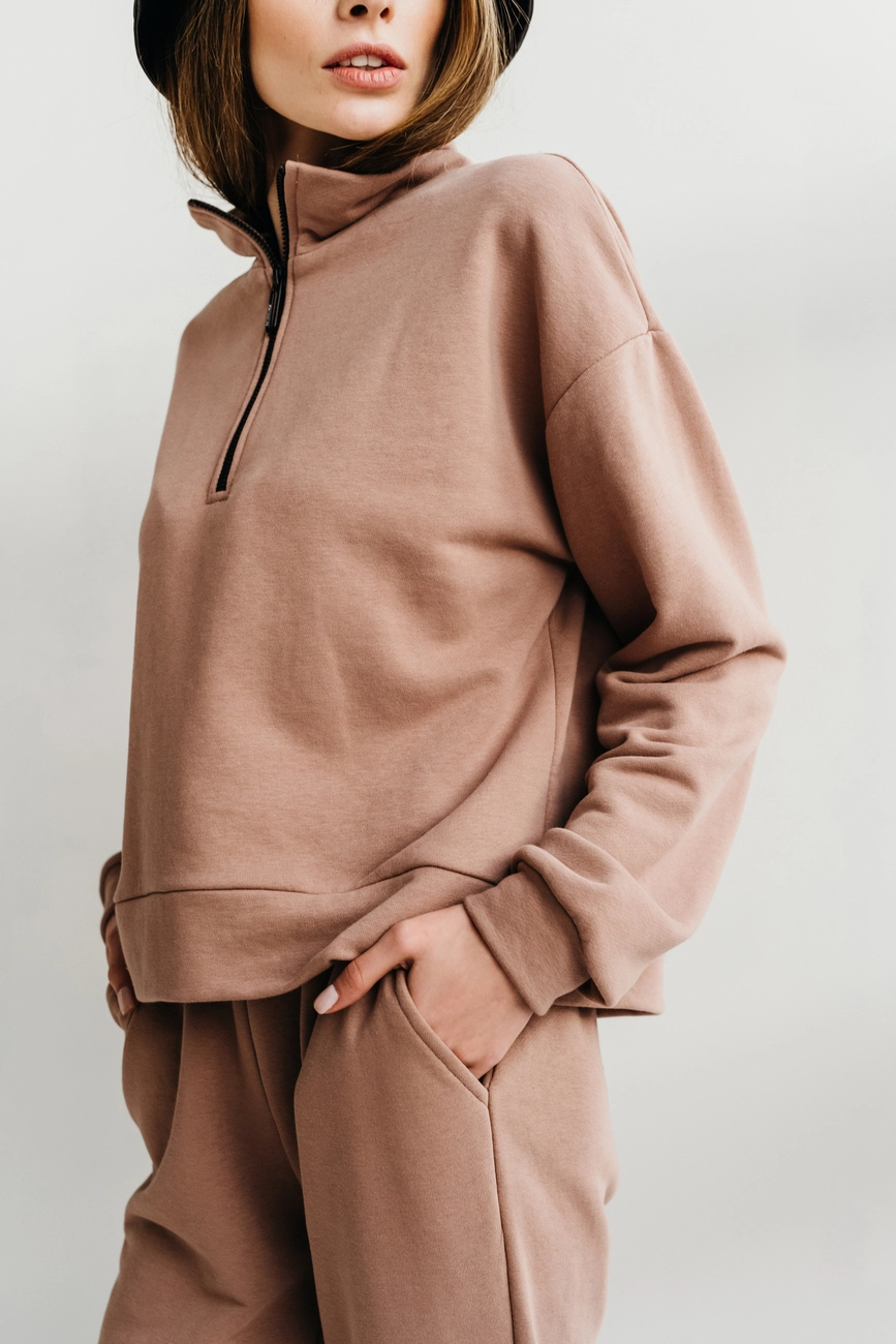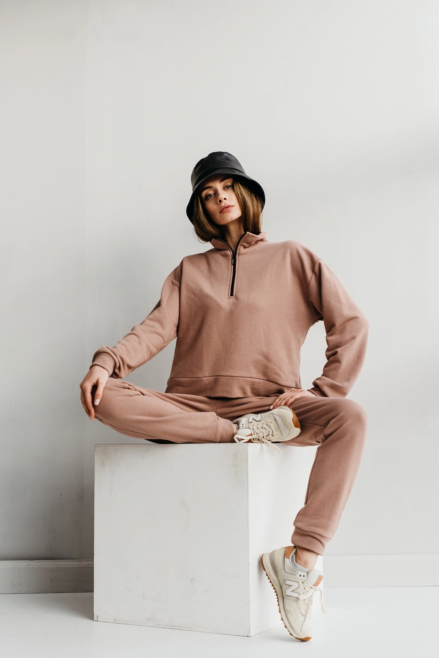 Жіночий спортивний костюм з трендовим світшотом з блискавкою на