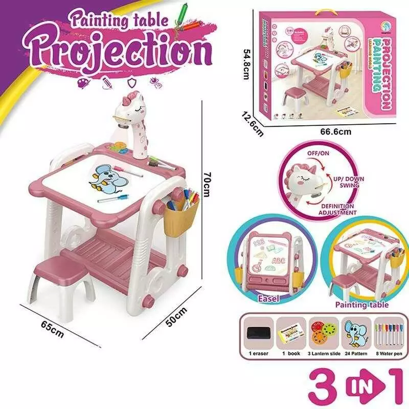 Столик ігровий з проєктором YM 58 (6) підсвічування, звук, маркери, губка, 3 диски, стільчик, дошка для малювання, в коробці