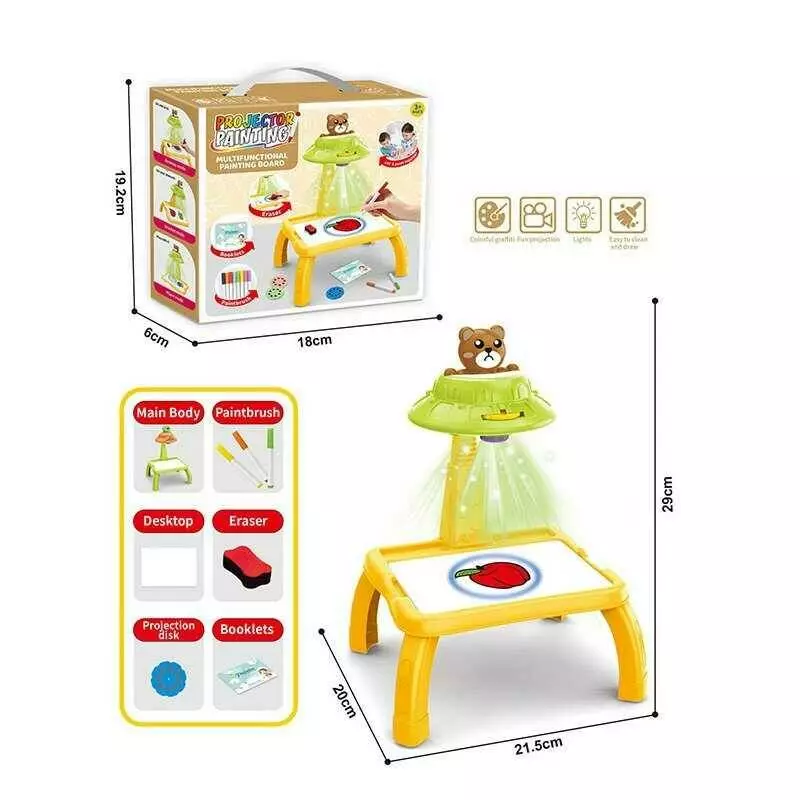 Столик з проєктором ZF 1004 F (60) на батарейках, “Ведмедик”, підсвітка, диски, фломастери, в коробці