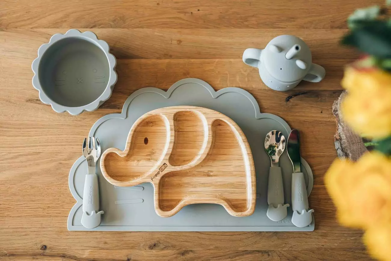 Фотография 1 товарной позиции интернет-магазина детских игрушек www.smarttoys.com.ua Столові прибори дитячі FreeON Elephant металеві з силіконовою ручкою, сірі