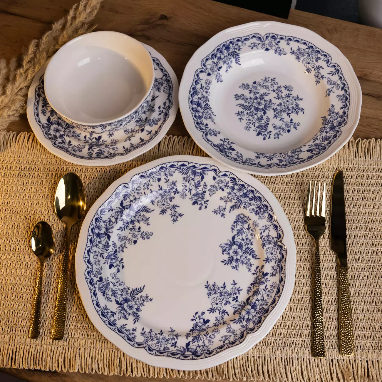 Порцеляновий столовий сервіз Bitossi розрахований на 4 персони та складається з 16 предметів. Кожен елемент виготовлений із високоякісної порцеляни з глянцевим покриттям, що легко миється та зберігає свій вигляд навіть після частого використання. Витончений орнамент у синіх відтінках із флористичним малюнком додає класичного стилю, роблячи набір доречним як для сімейних обідів, так і для сервірування святкового столу.