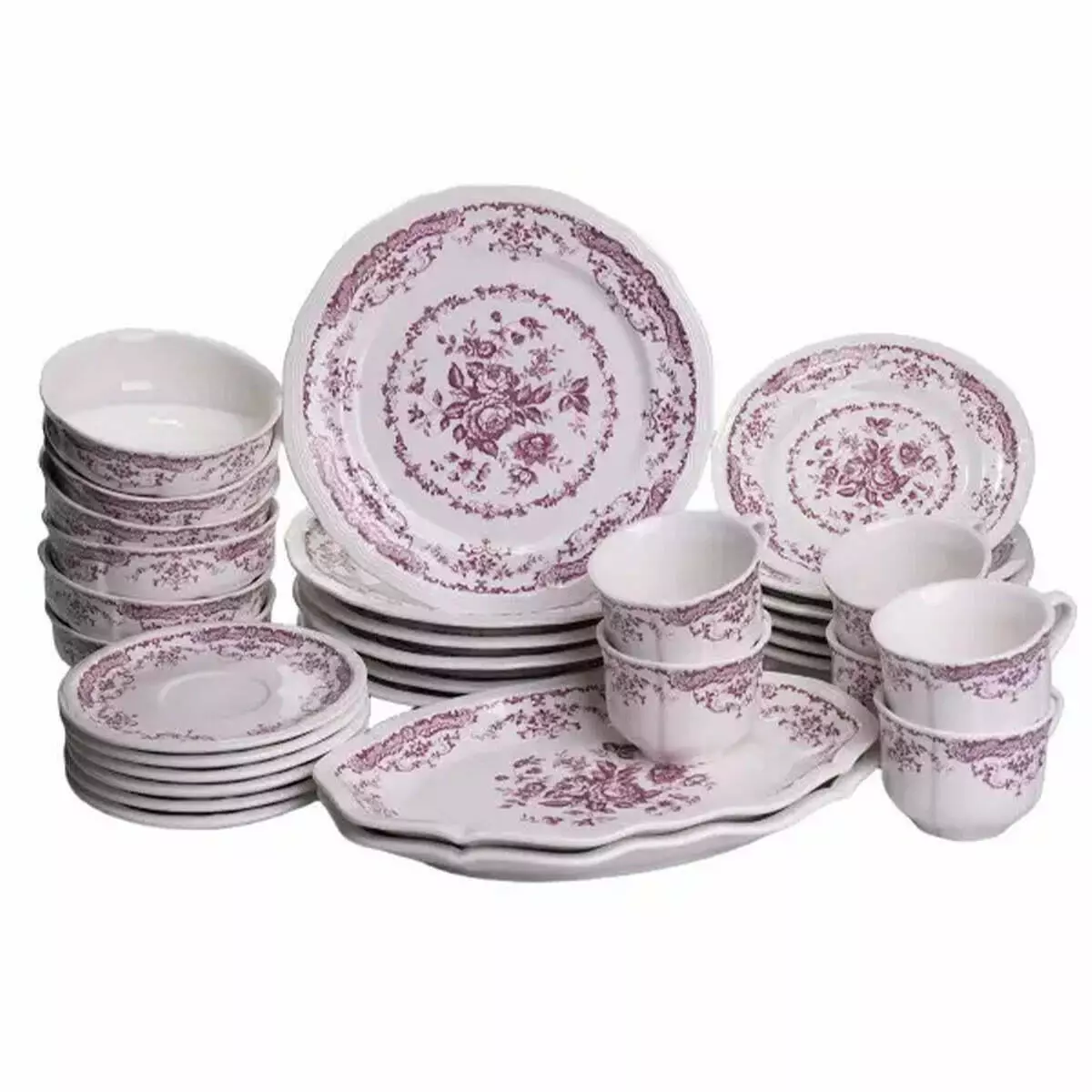 Два сервірувальні блюда розміром 36×20 см доповнюють набір і дозволяють ефектно подавати основні страви чи великі порції закусок. Увесь сервіз складається з 32 предметів, що забезпечує повне сервірування столу на 6 персон і робить його практичним рішенням для дому або як подарунок.