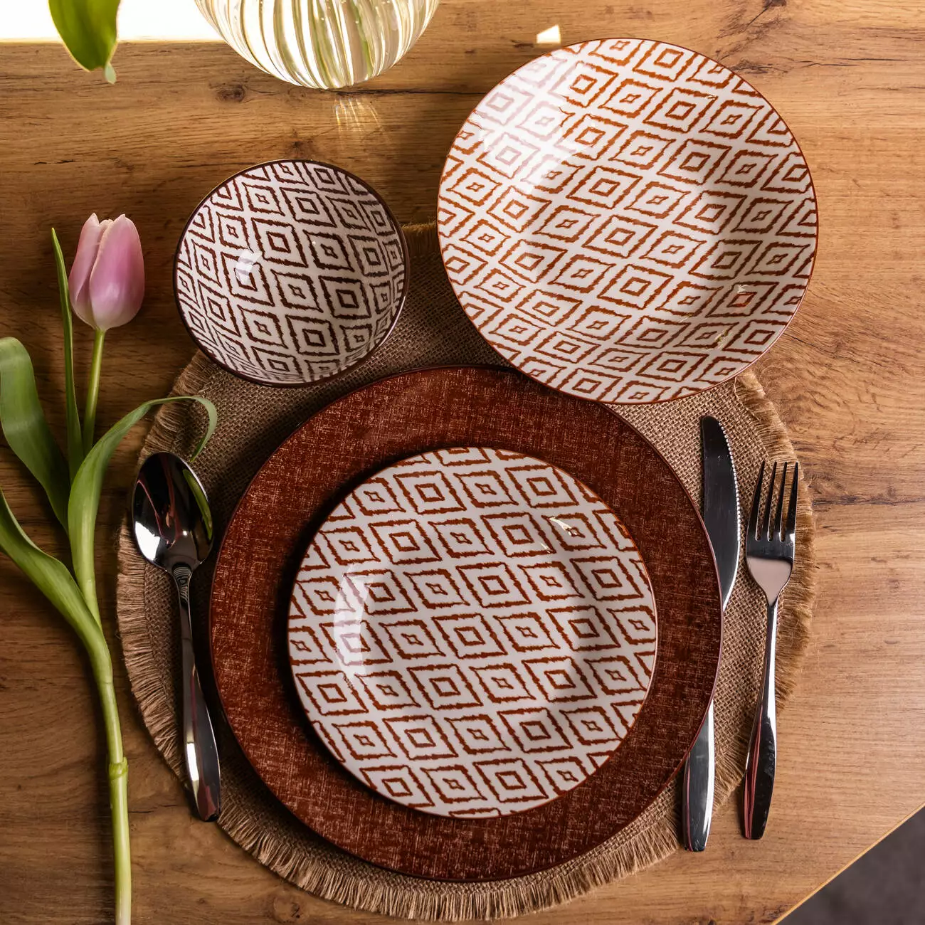 Порцеляновий столовий сервіз Striato на 24 предмети призначений для сервірування столу на 6 персон. До комплектації входять 6 обідніх, 6 десертних, 6 супових тарілок і 6 салатників, що дозволяє зручно організувати подачу основних страв, супів, салатів і десертів під час щоденного прийому їжі або святкового сервірування. Така комплектація забезпечує повний набір посуду для організованого оформлення столу.
