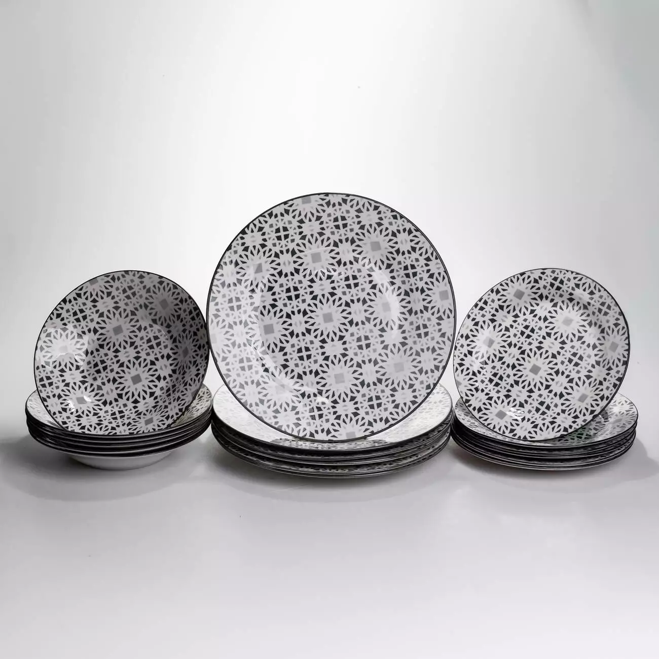 • Комплектація: 6 обідніх тарілок, 6 десертних тарілок, 6 супових тарілок