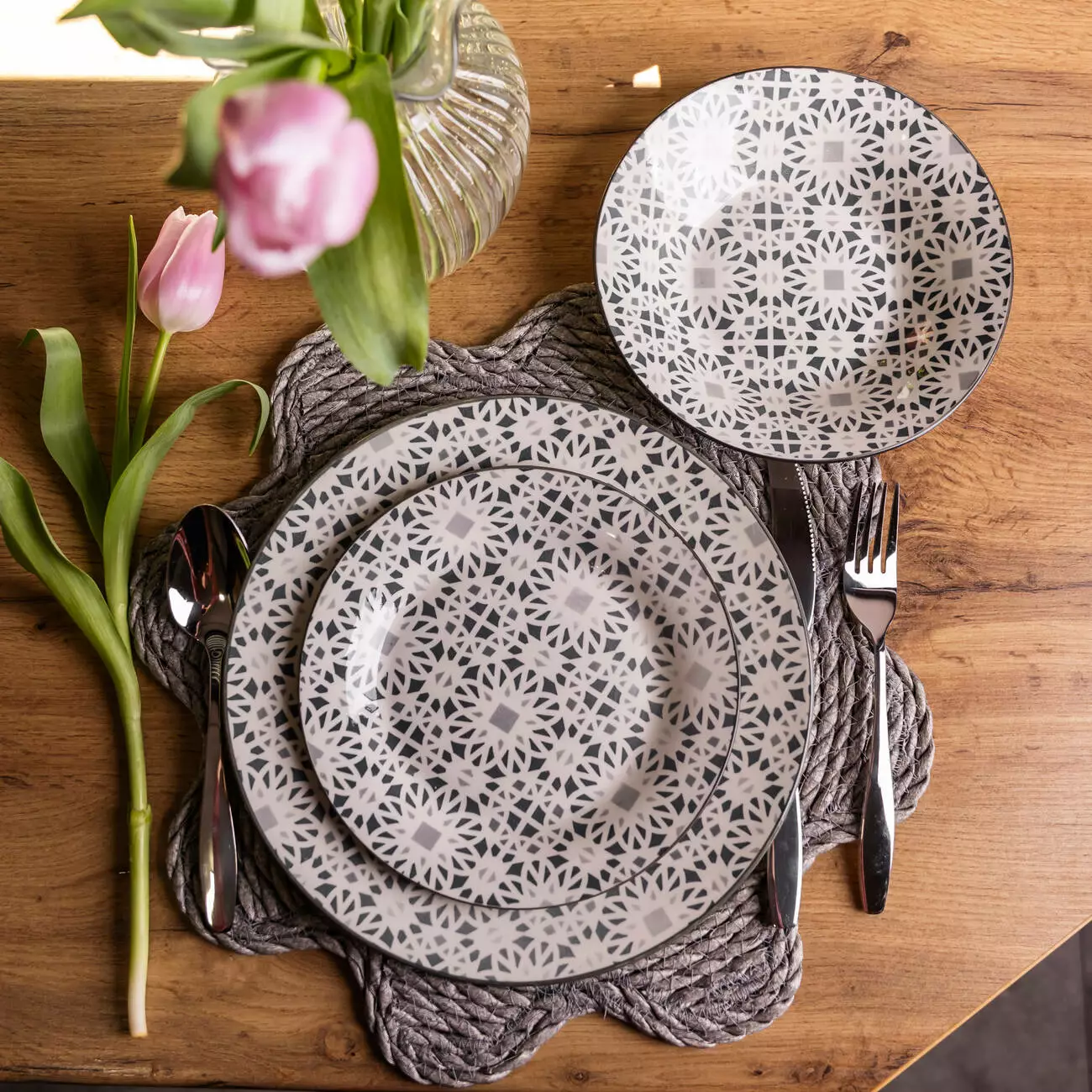 Класична форма тарілок у поєднанні з рельєфним орнаментом дозволяє легко поєднувати сервіз із різними стилями посуду та сервірування. Комплект підходить для щоденного використання вдома, сімейних обідів або святкових подій, забезпечуючи охайну та організовану подачу страв.