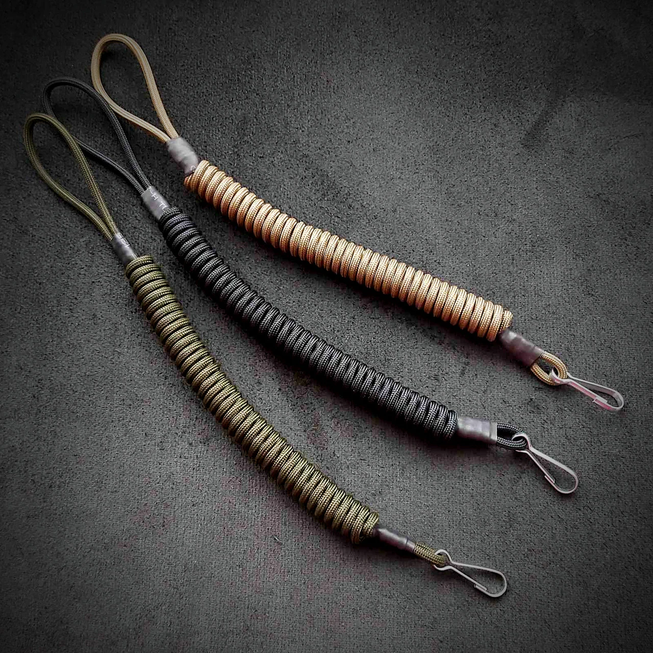Шнур виконаний із щільного паракорду. Кріпиться на ремінь завширшки 5 см за допомогою петлі. Фіксація зброї на металевий карабін. Довжина 30 см/100 см (у розтягнутому стані)