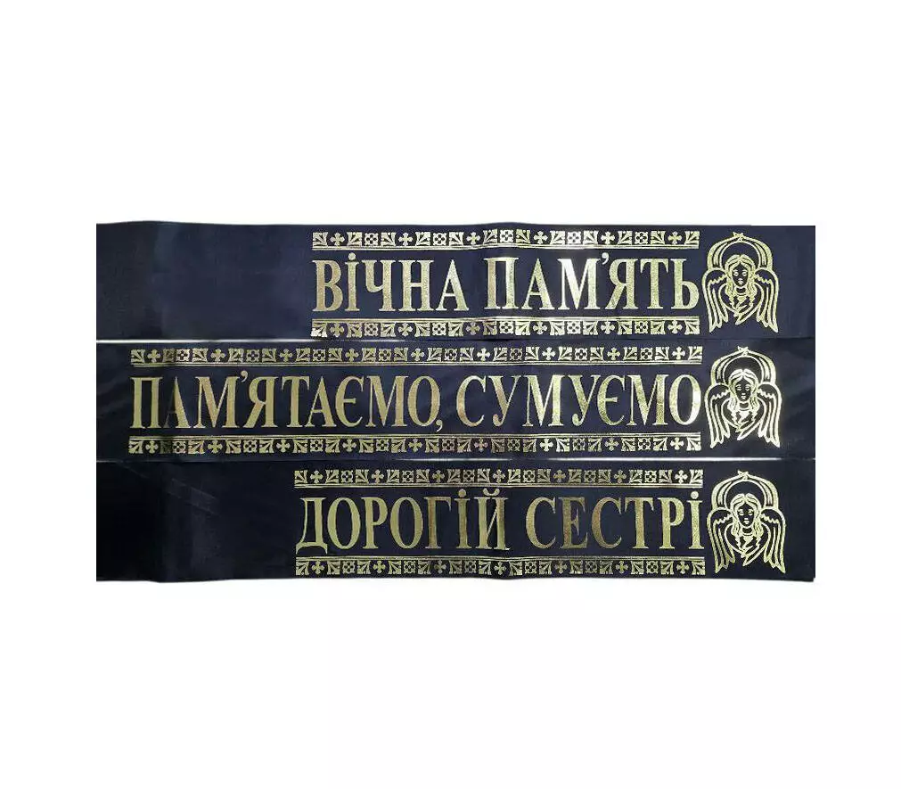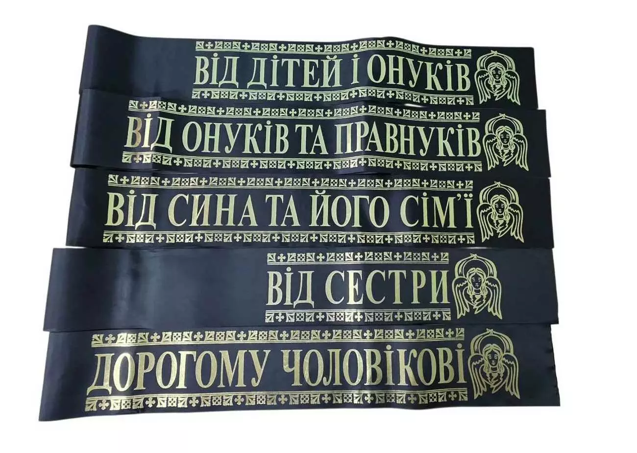 Стрічка ритуальна з шовку, розмір 100*2000мм, 10 шт в упаковці з однаковим написом.