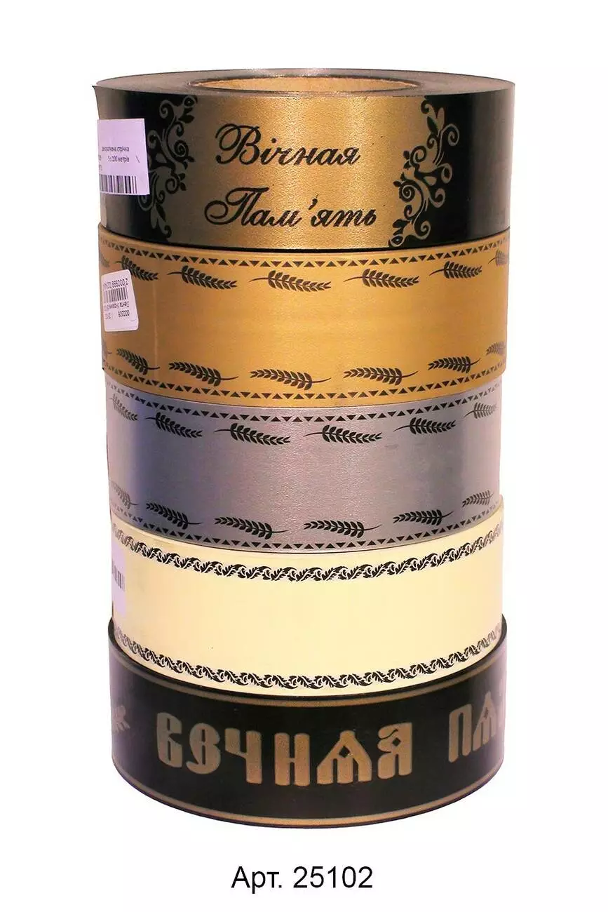Ритуальна стрічка для оформлення вінків і квітів. Ширина 5 см, довжина 92 м.