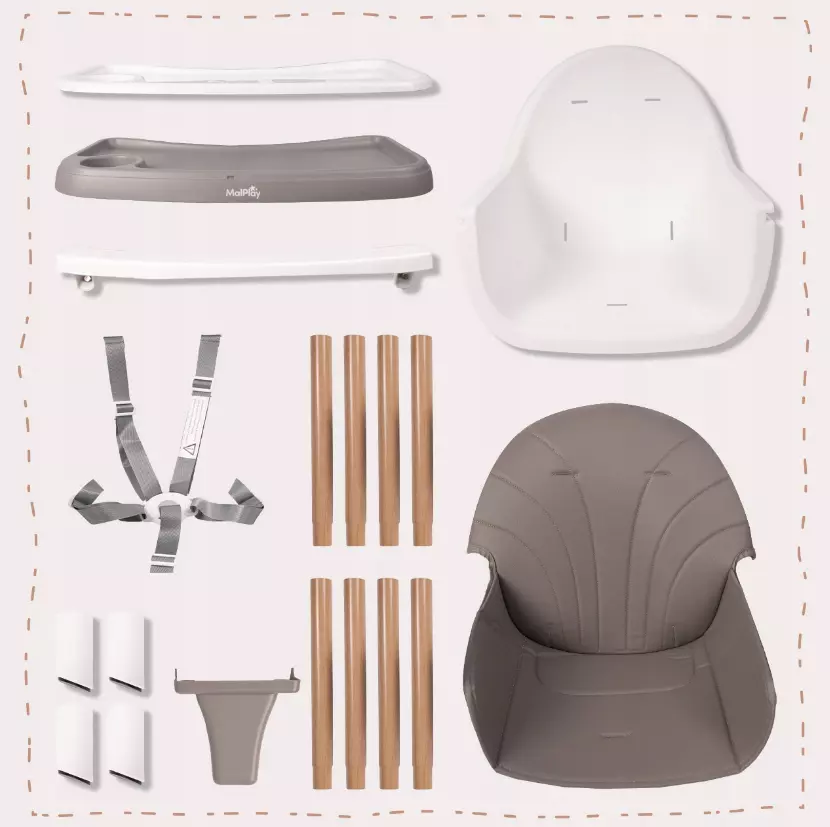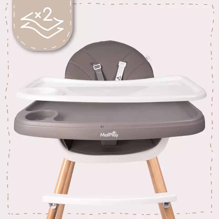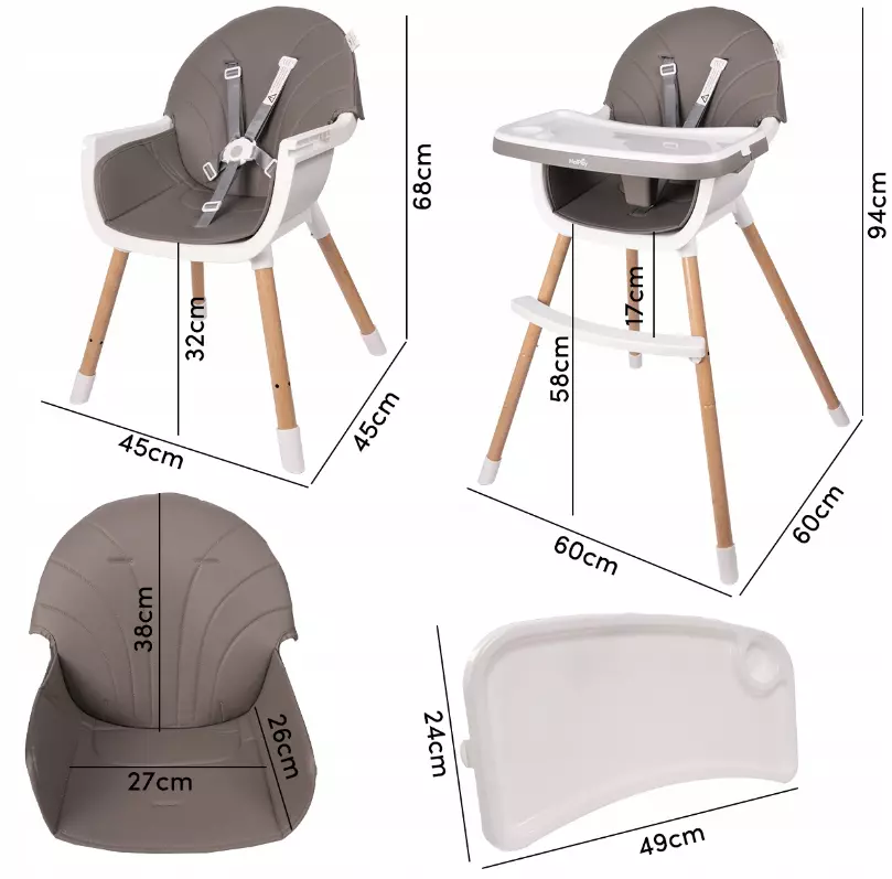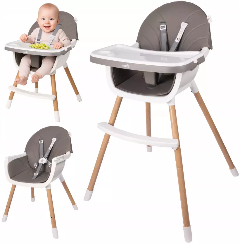 • 3 в 1 – высокое и низкое стульчик для кормления, а также отдельный стул для подросшего ребёнка