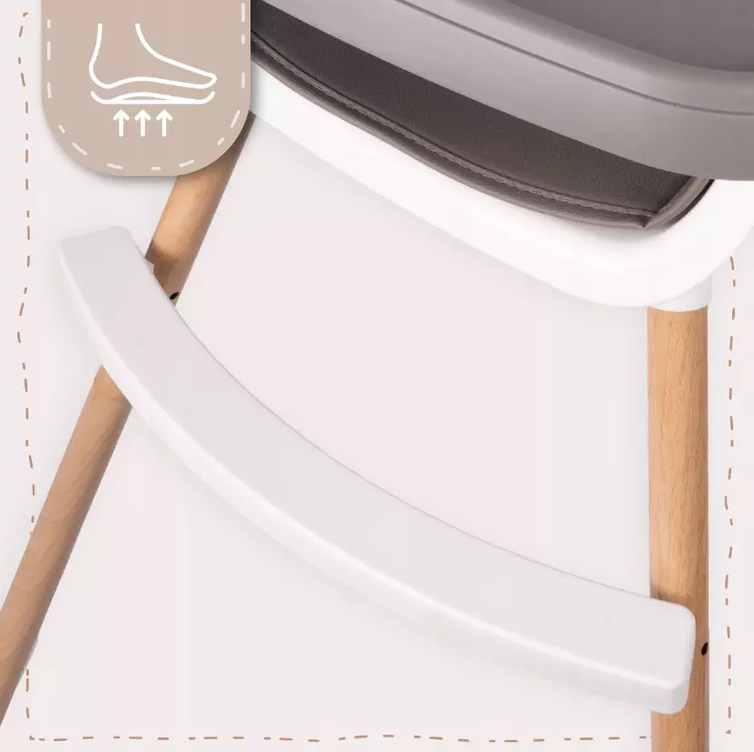 Встроенная подножка, закрепленная между передними ножками стульчика, обеспечивает естественную поддержку ножек ребенка. Это позволяет малышу сидеть в эргономичном положении, что способствует его комфорту и чувству безопасности во время еды или игры.