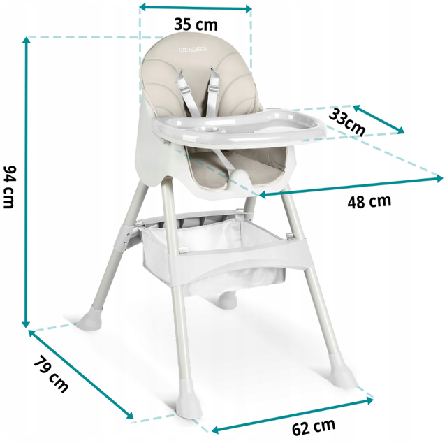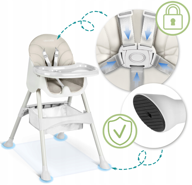- безопасность: пятиточечные ремни, нескользящие ножки,