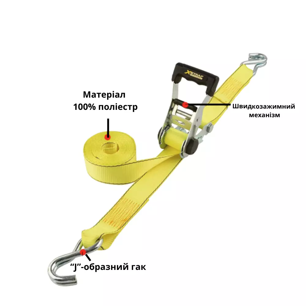 Стяжний ремінь з храповим механізмом для кріплення вантажу,
