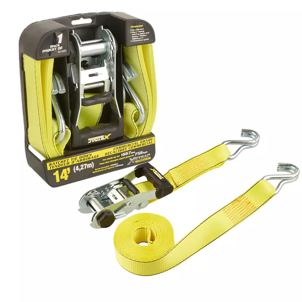 кріплення. Ширина стропи — 38 мм, довжина — 4,27 м. Яскравий жовтий