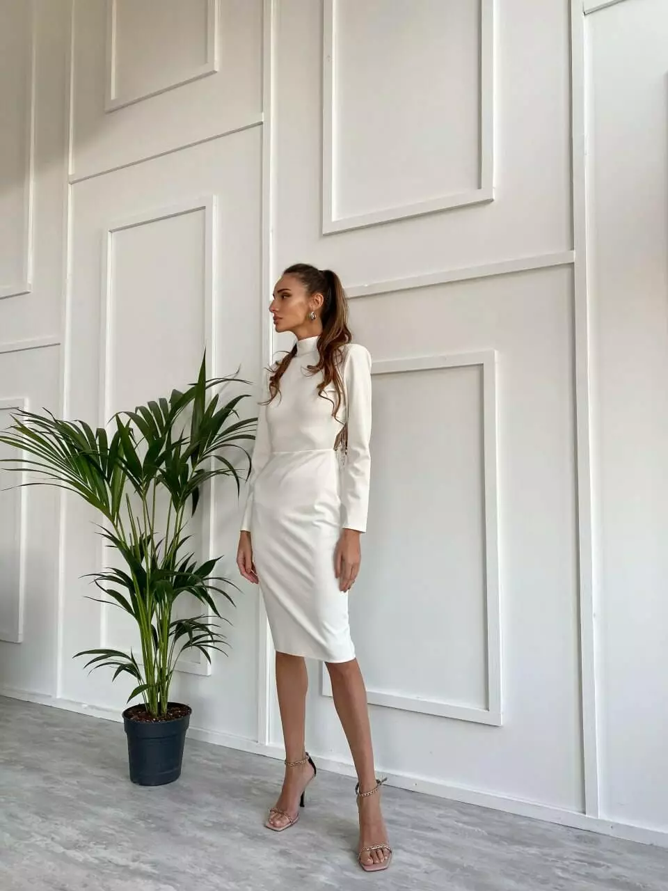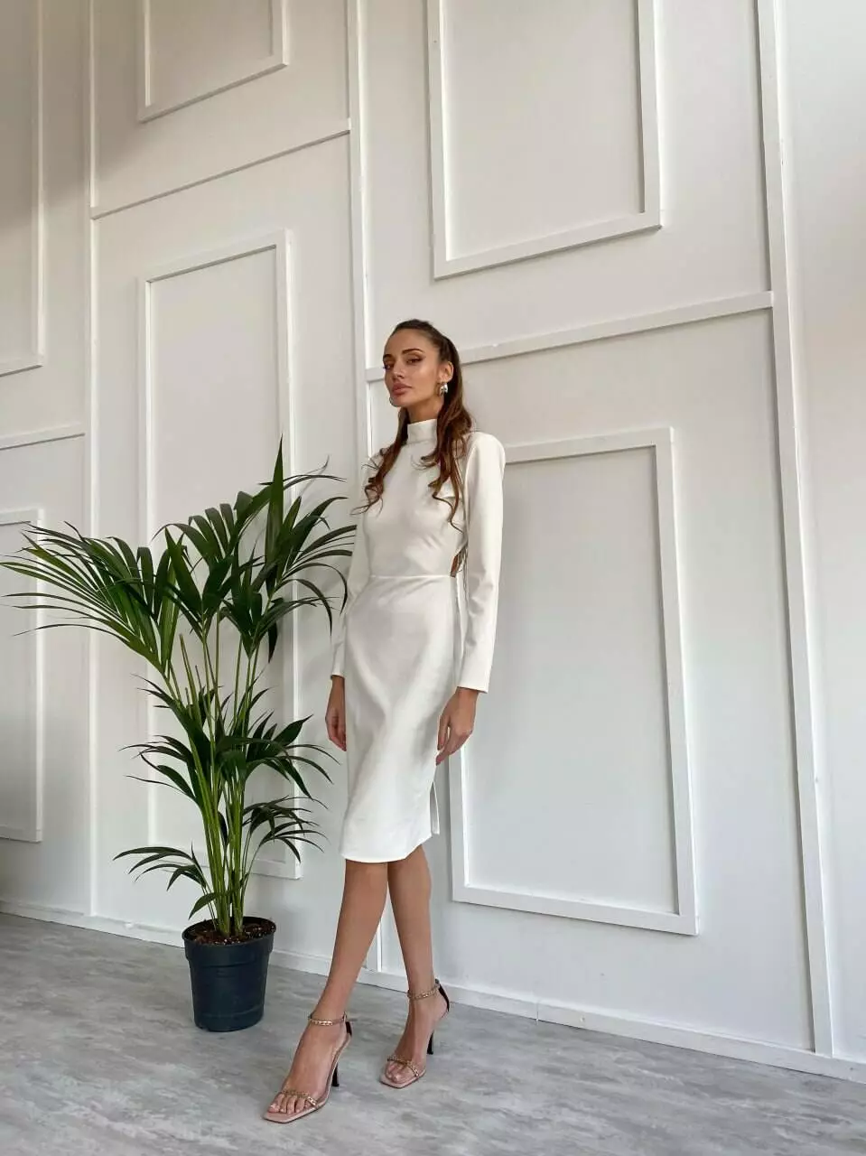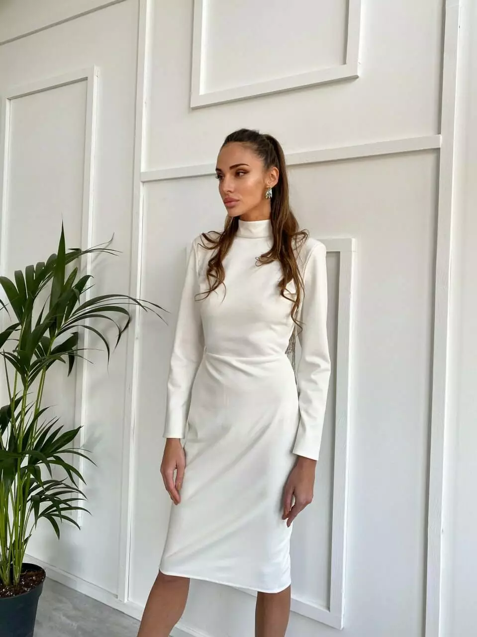 Жіноча сукня гольф міді з щільного трикотажу lux, з об'ємними підплічниками та застібається сукня на ґудзики на горлі ззаду і потайною блискавкою
