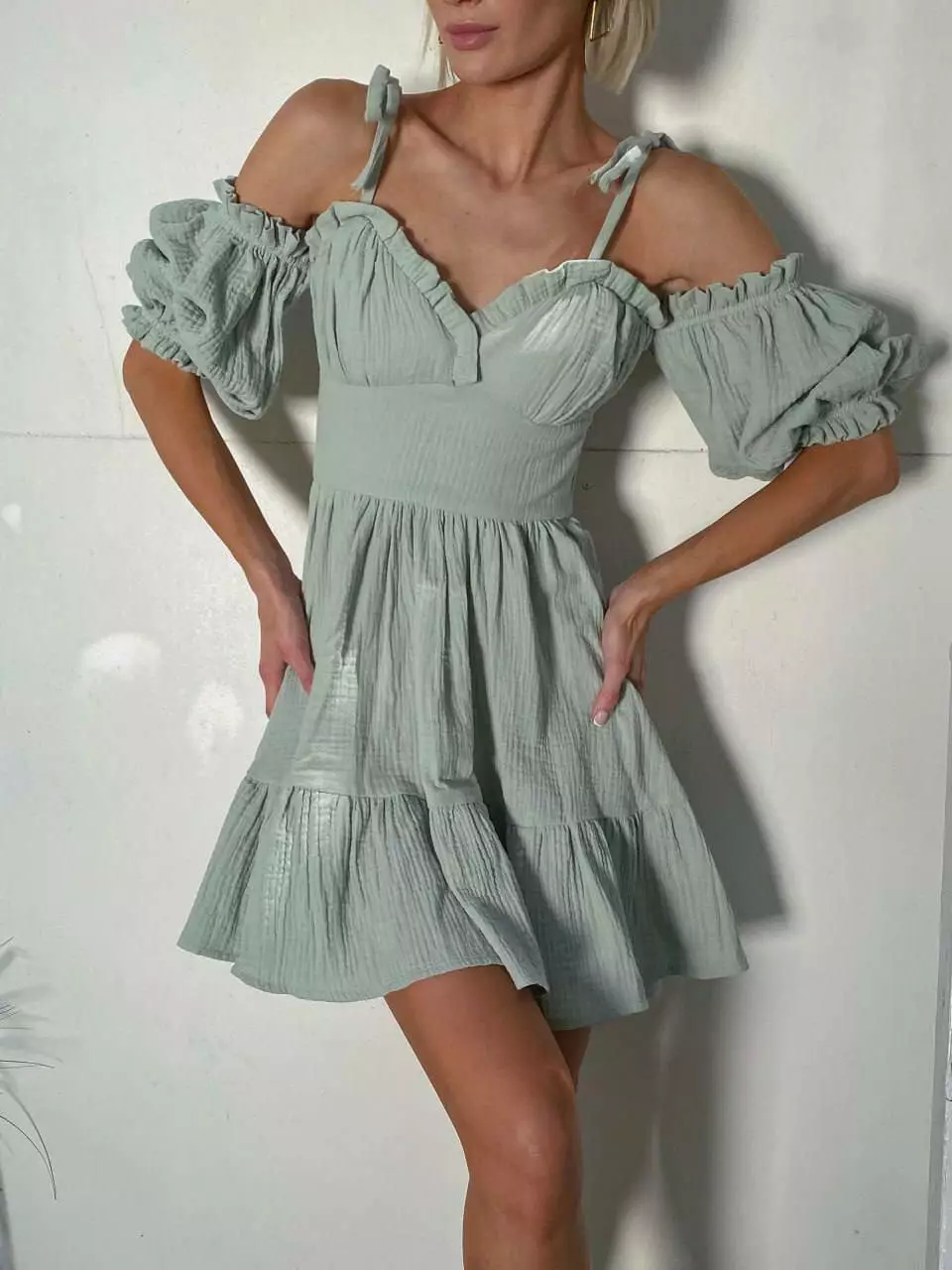 Витончена, легка літня сукня Бретели на зав'язках.