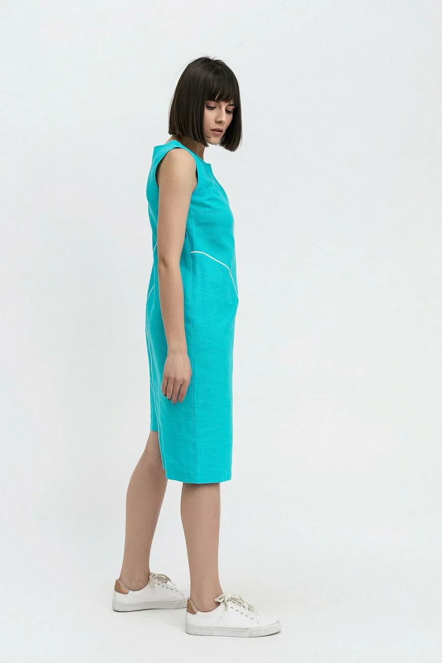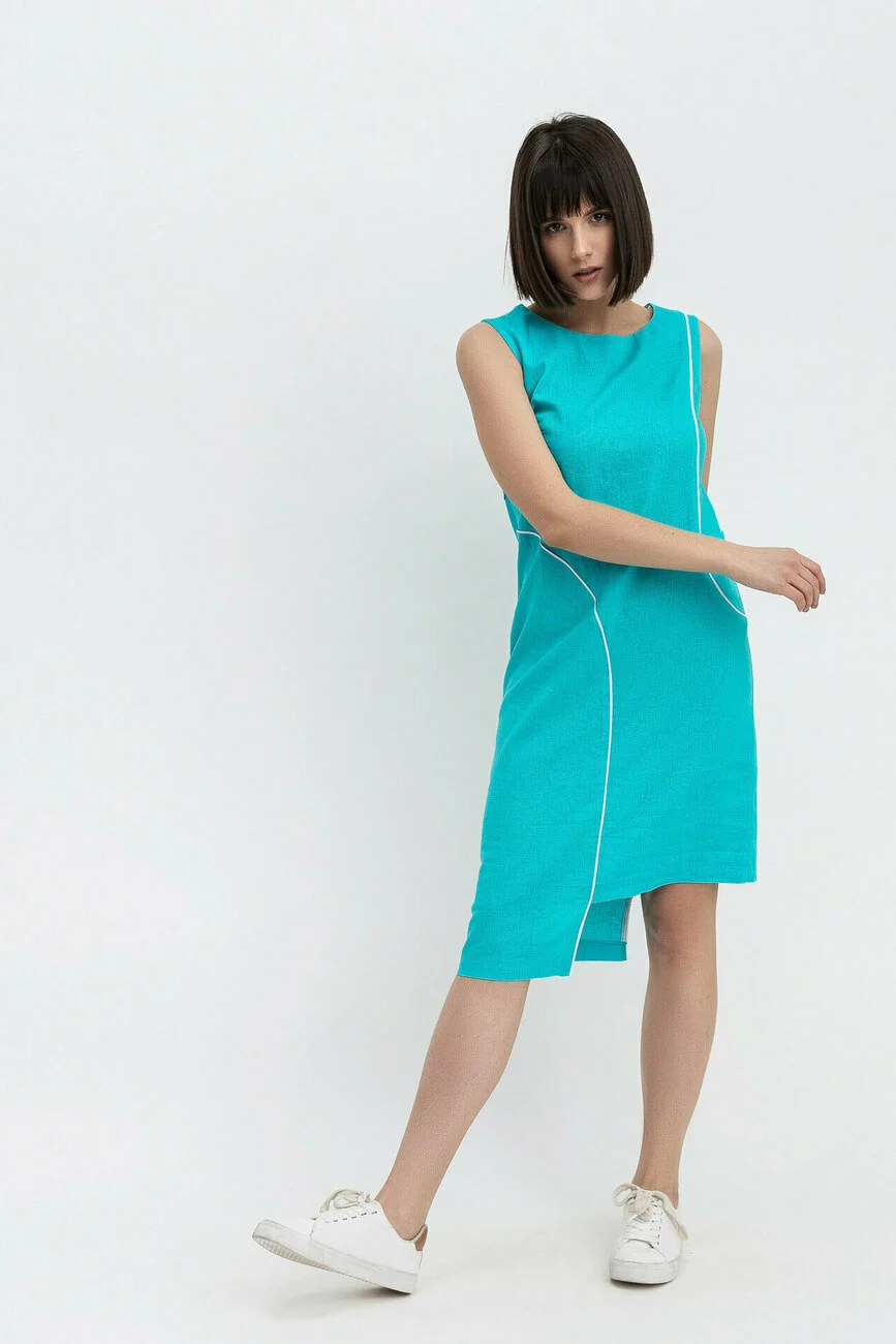 Оригинальное повседневное платье из легкого льна полуприталенного силуэта.