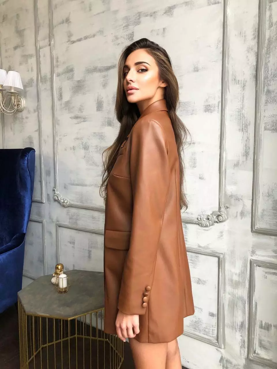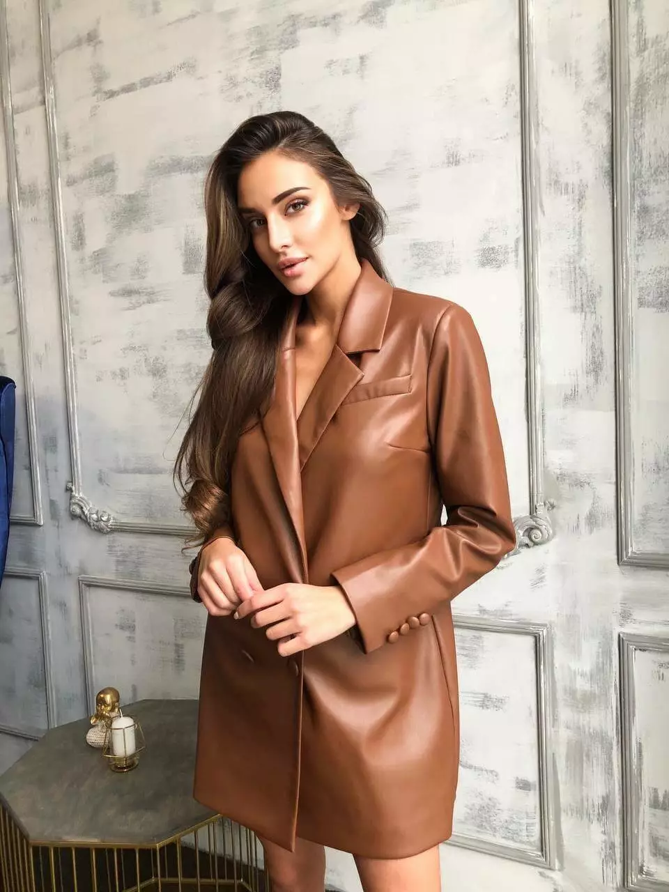 Неймовірно стильна сукня-піджак виконана з екошкіри Lux на замшевій основі Трендовий дизайн, що відповідає останнім модним тенденціям Класична сукня вільного піджачного крою, але злегка приталеного Модель на ґудзиках із коміром та довгими рукавами, має спереду дві кишені клапана