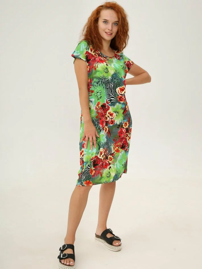 Сукня – футболка прямого крою, виготовлена з бавовняного штапелю.