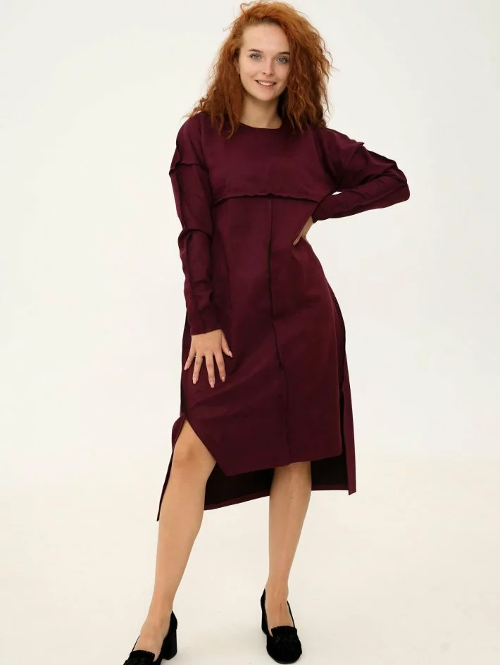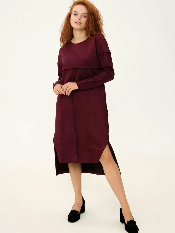 Сукня довжини міді з замшевої тканини. Тканина трохи тягнеться,