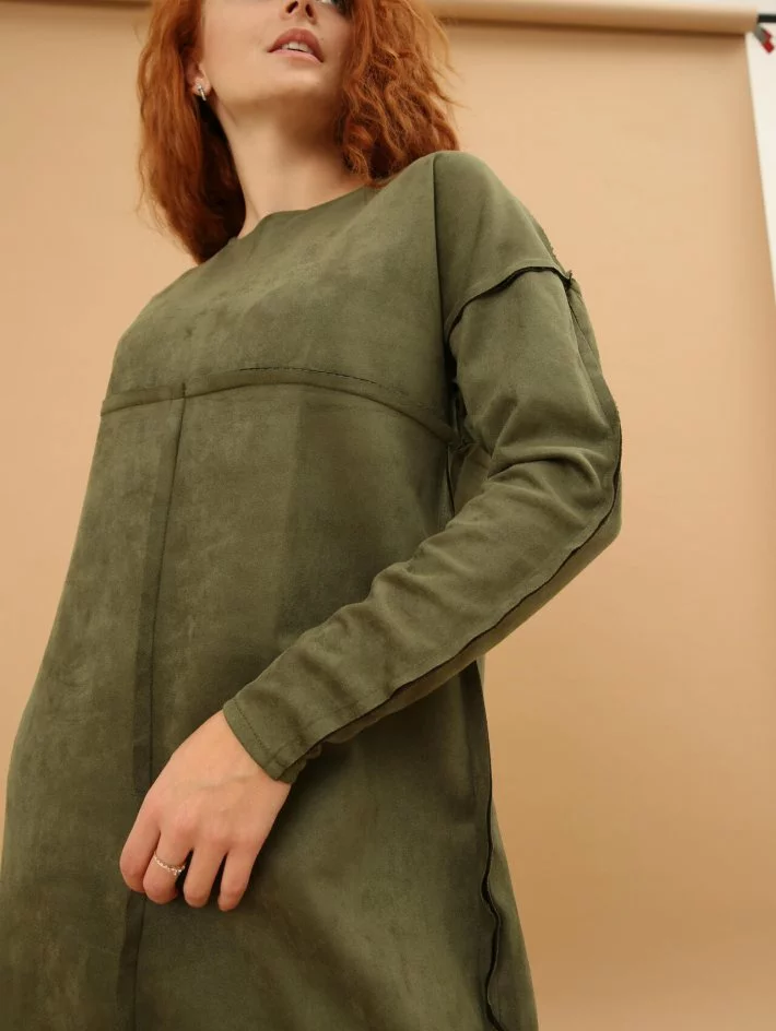 Сукня довжини міді з замшевої тканини. Тканина трохи тягнеться,