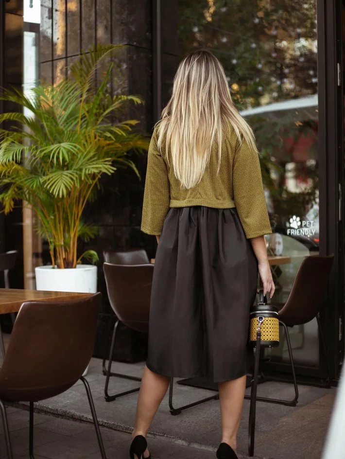 Сукня класичного стилю комбінована з двох тканин. У вільній