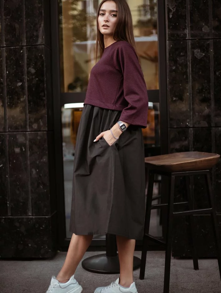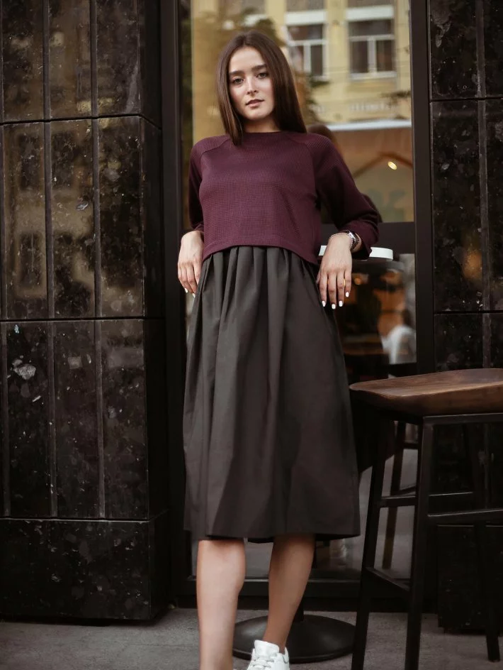 Сукня класичного стилю комбінована з двох тканин. У вільній