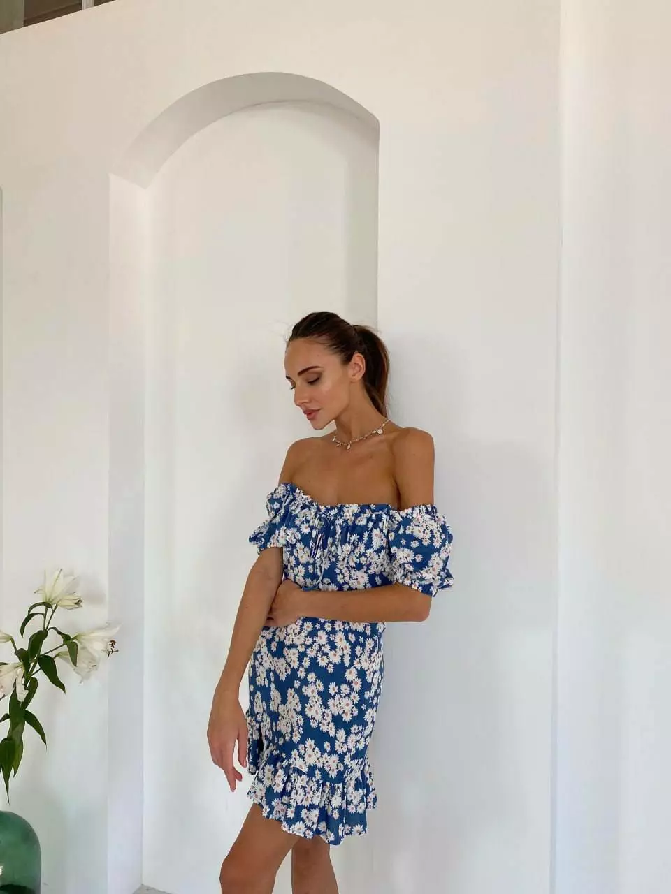 Літня ніжна міні сукня з імітацією ліфа, оборками по низу та верху.