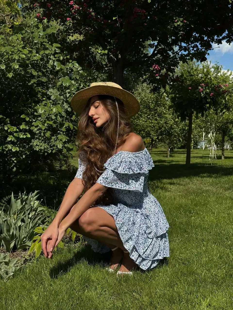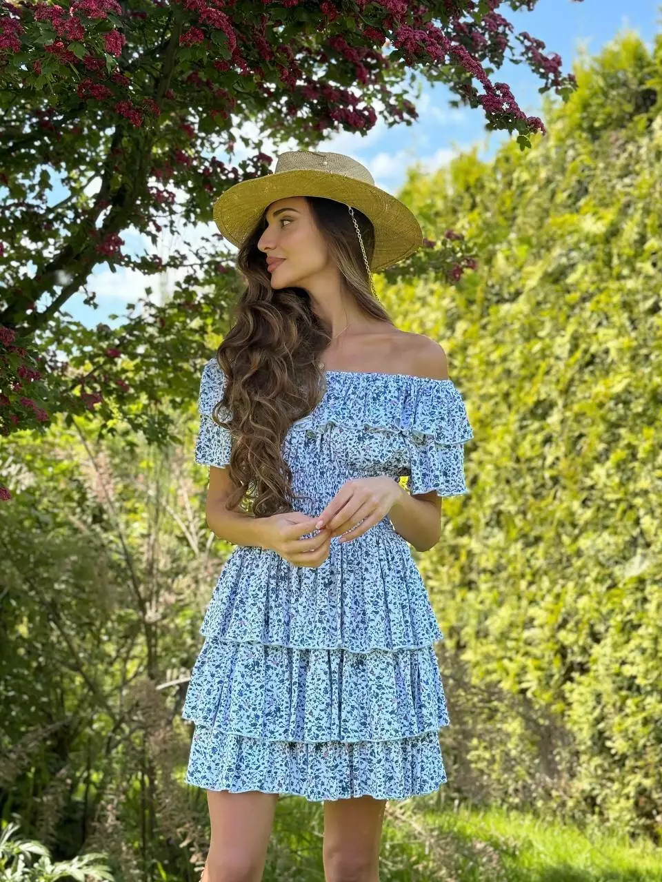 Літня сукня з воланами в дрібну квіточку