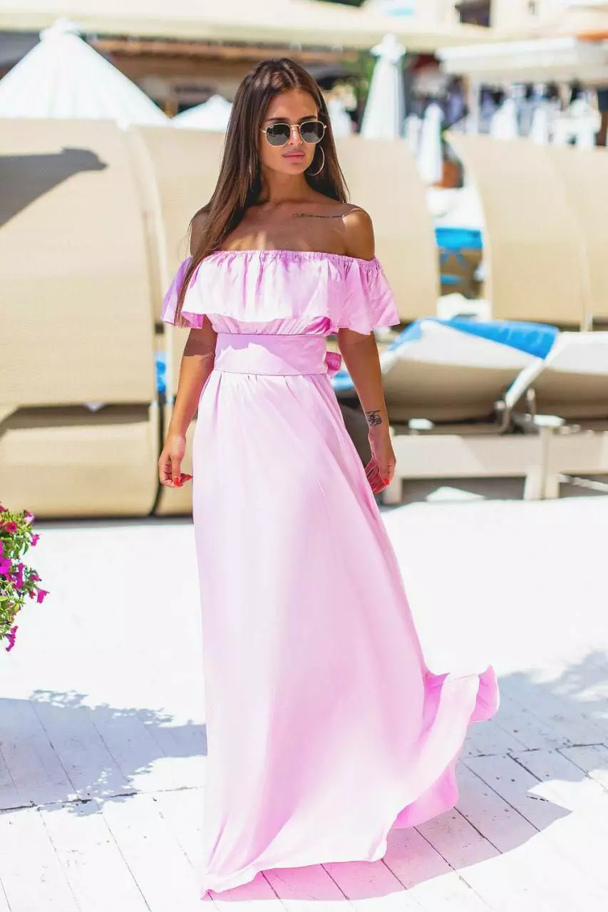 Літня сукня в підлогу човник, гумка під грудьми, пояс у комплекті