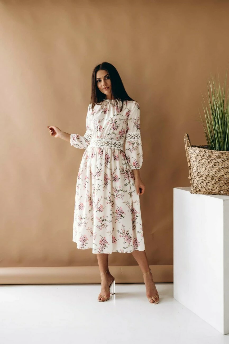 Сукня в квітковий принт з мереживом