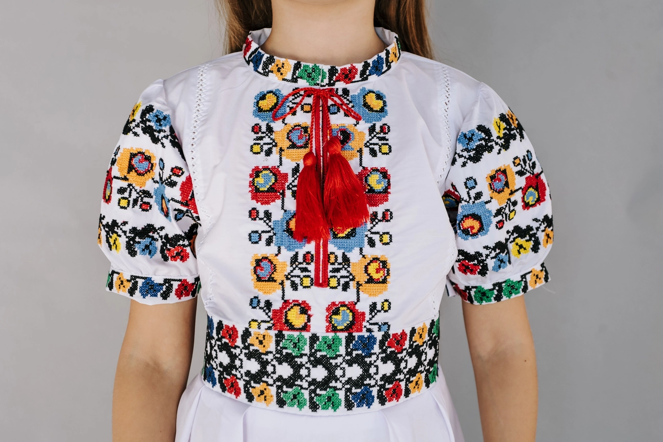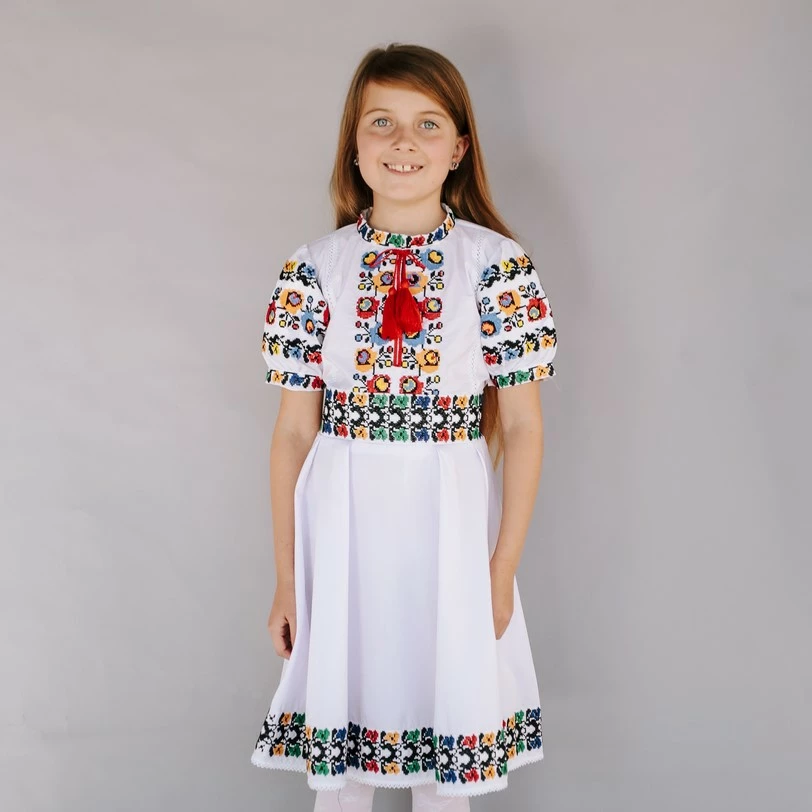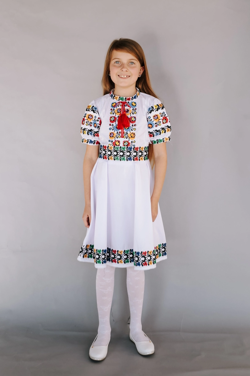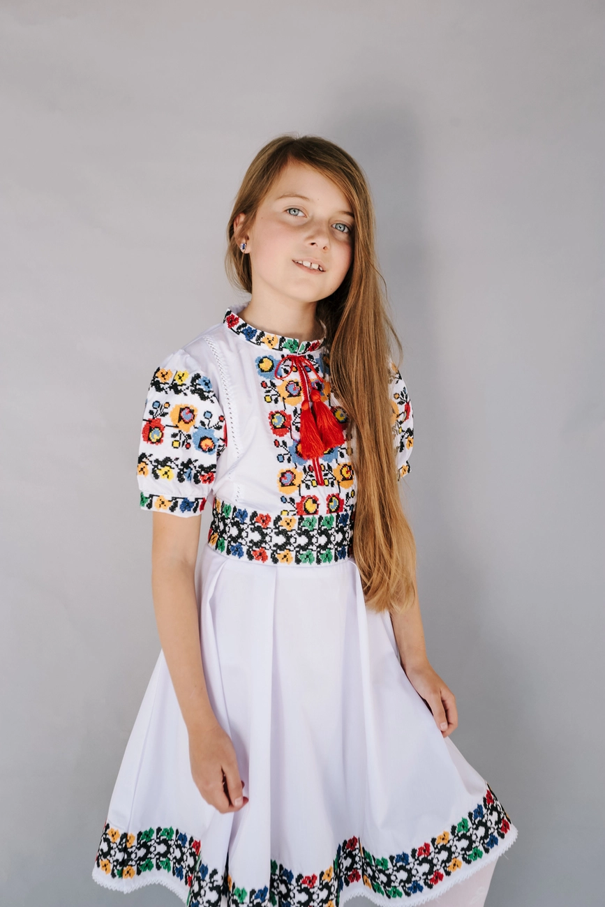 Дитяча сукня білого кольору, вишита