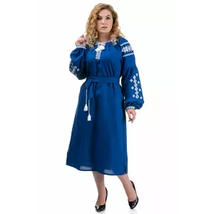 Сукню чудово доповнює поясок з білими китицями. За рахунок пояса можно підкреслити талію, а бічні розрізи допоможуть придати Вашому образу неймовірної елегантності.