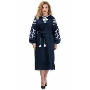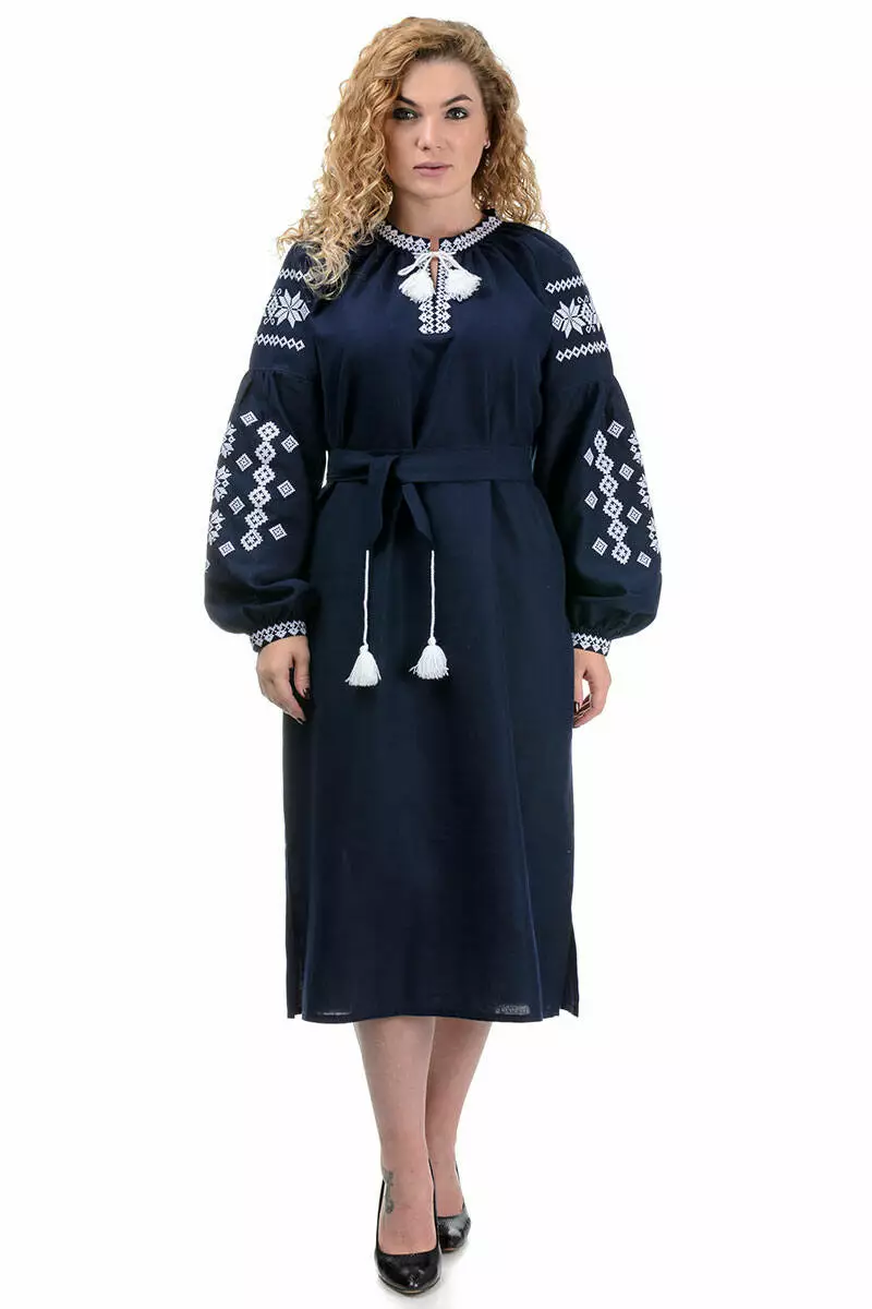 Сукню чудово доповнює поясок з білими китицями. За рахунок пояса можно підкреслити талію, а бічні розрізи допоможуть придати Вашому образу неймовірної елегантності.