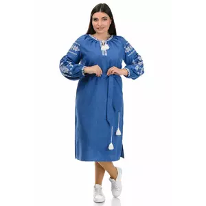 Сукня-вишиванка вироблена з якісних матеріалів. Тканина - льон-габардин щільна та приємна на дотик. Ошатні візерунки на рукавах і грудях вишиті машинним способом. Важливо, що навіть після багаторазового прання тканина і вишивка зберігають свої початкові кольори.