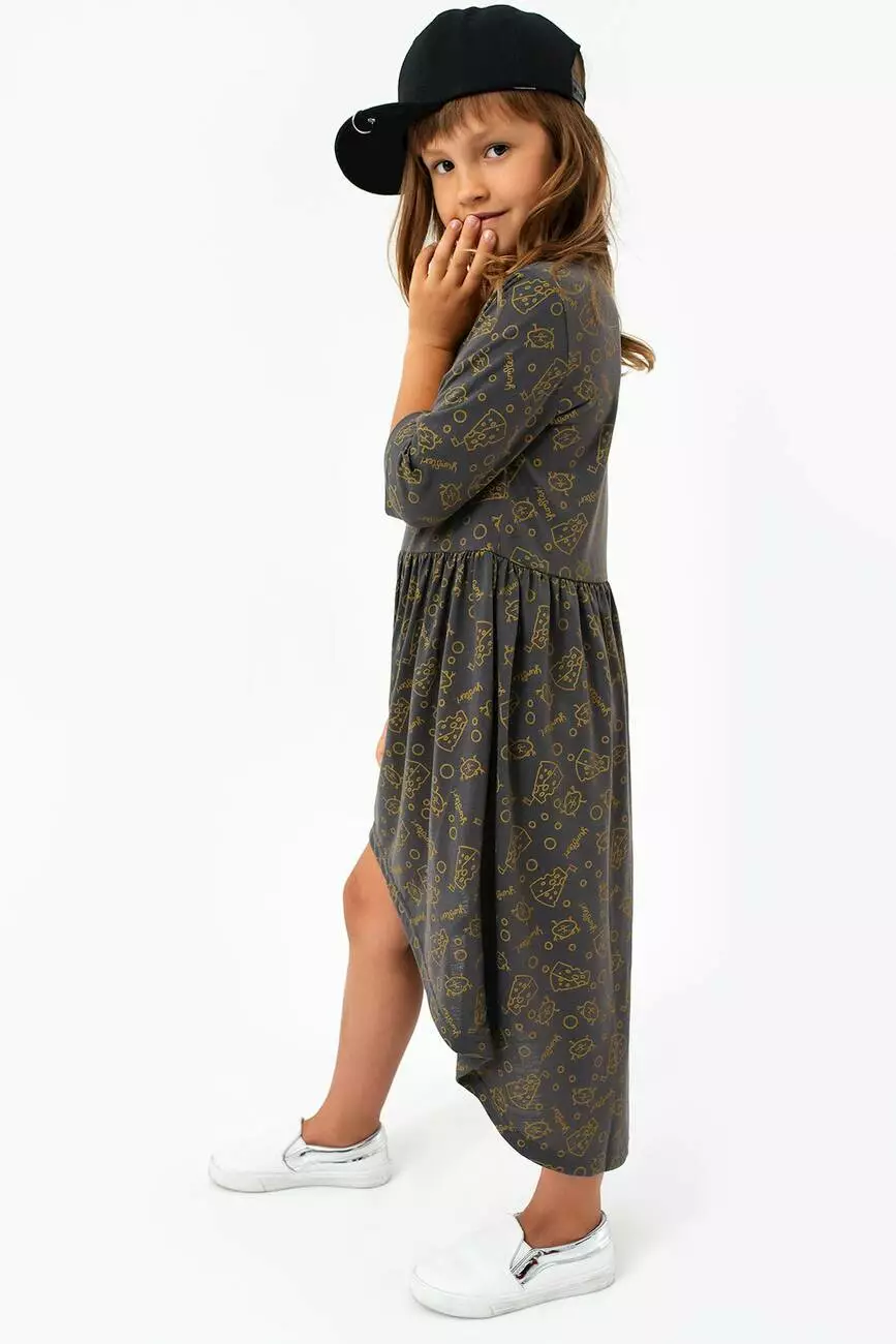 укороченими рукавами. Вільний крій. Асиметричний поділ. Принт