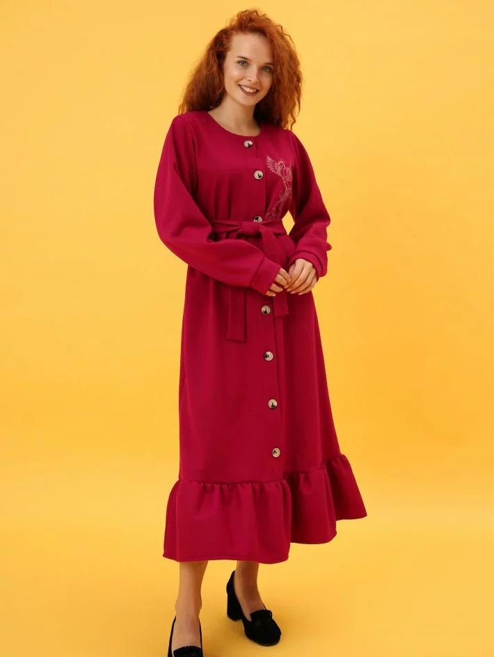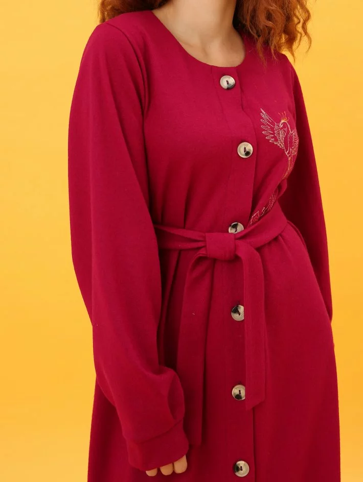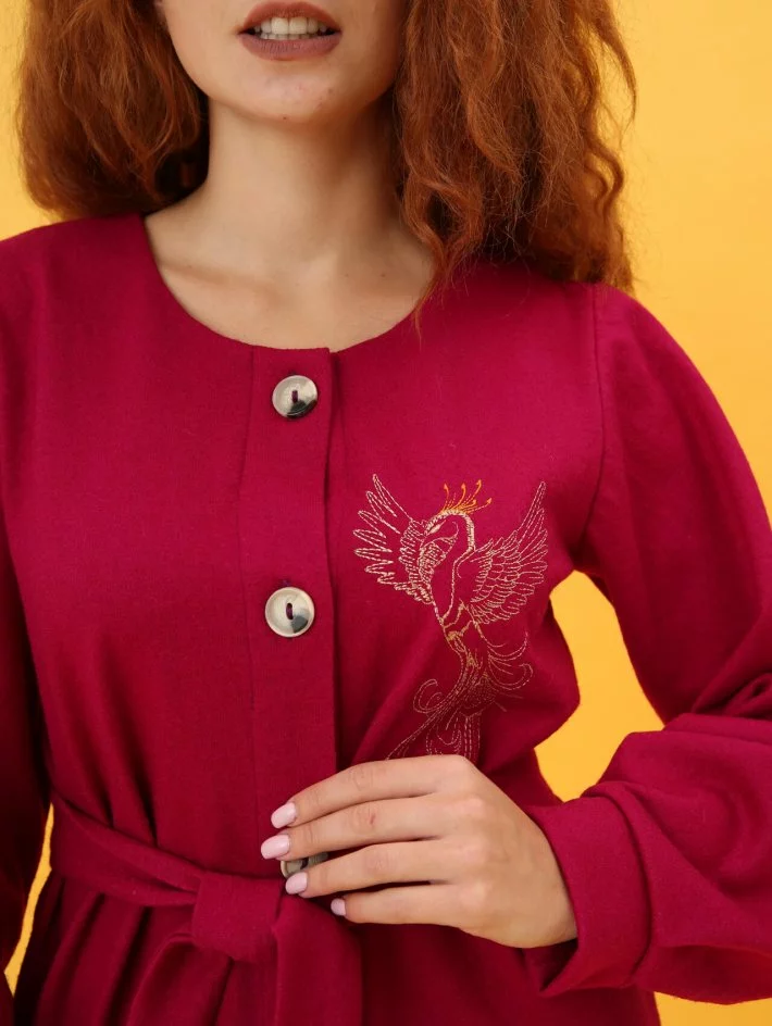 вишивкою "Жар птиця" і має пояс в комплекті. Довгий рукав на