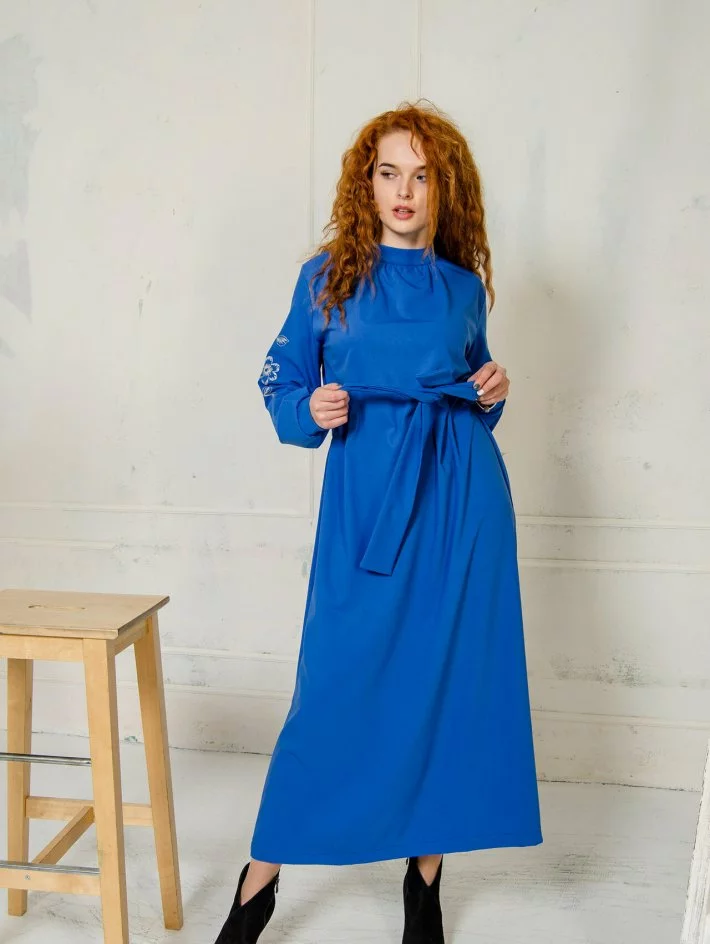 Довга сукня з тіара костюмкі з вишивкою на рукавах і