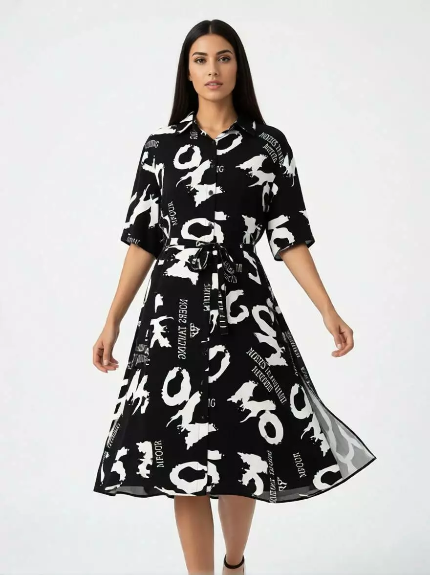 • Фасон: Плаття-рубашка (вільний А-силует), що плавно спадає по фігурі.