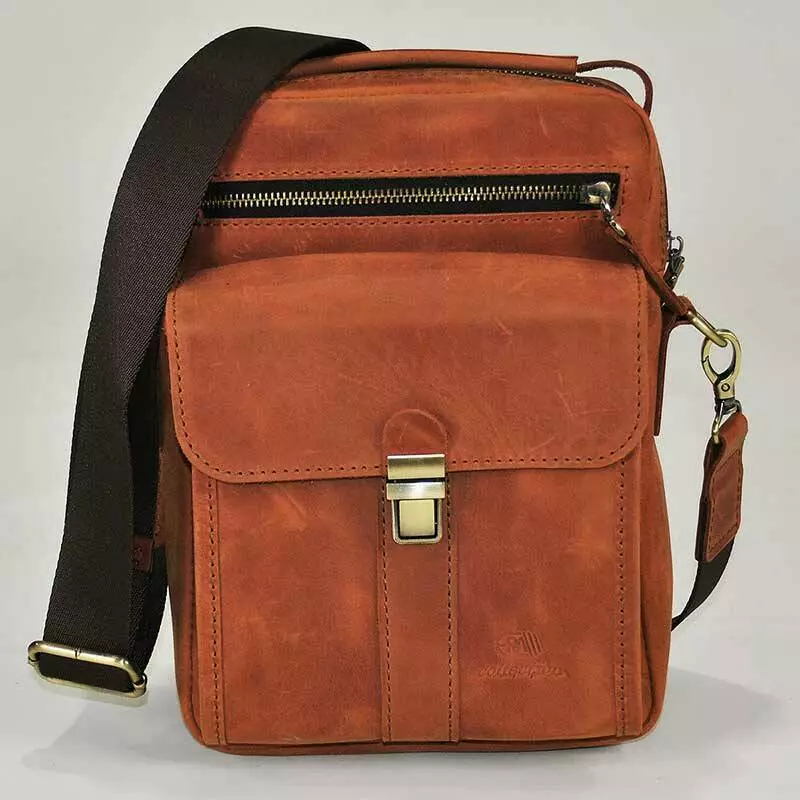 Чоловіча сумка spl-01-03 пошита із натуральної шкіри Crazy Horse рудого кольору.