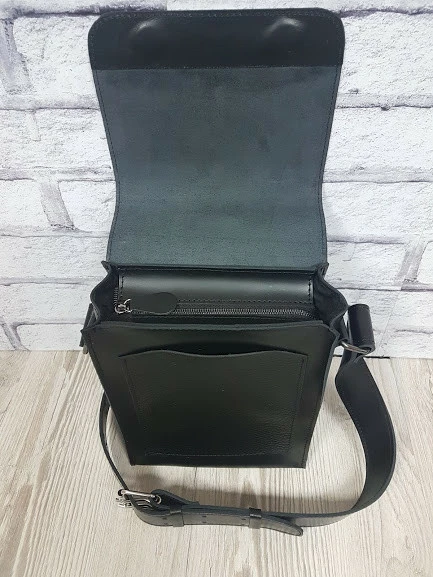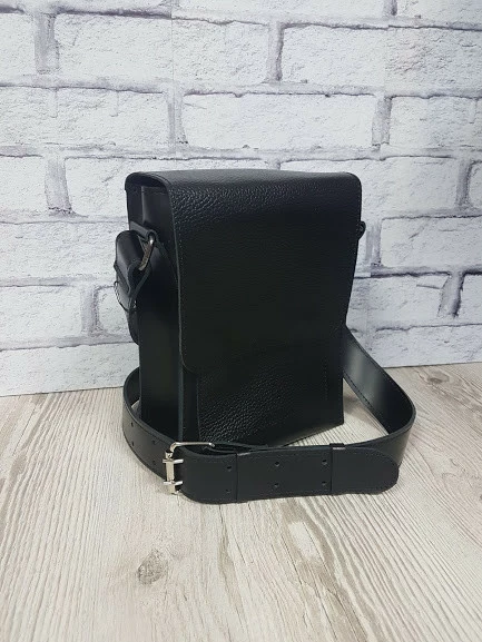 который на скрытых магнитах. Имеет широкий кожаный плечевой ремень,