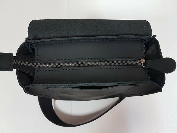 который на скрытых магнитах. Имеет широкий кожаный плечевой ремень,