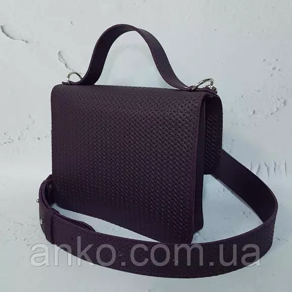 Сумка женская "Бианка" натуральная кожа, баклажан с тиснением под плетенку