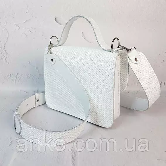 Сумка женская "Бианка" натуральная кожа, белая матовая тиснение под плетенку
